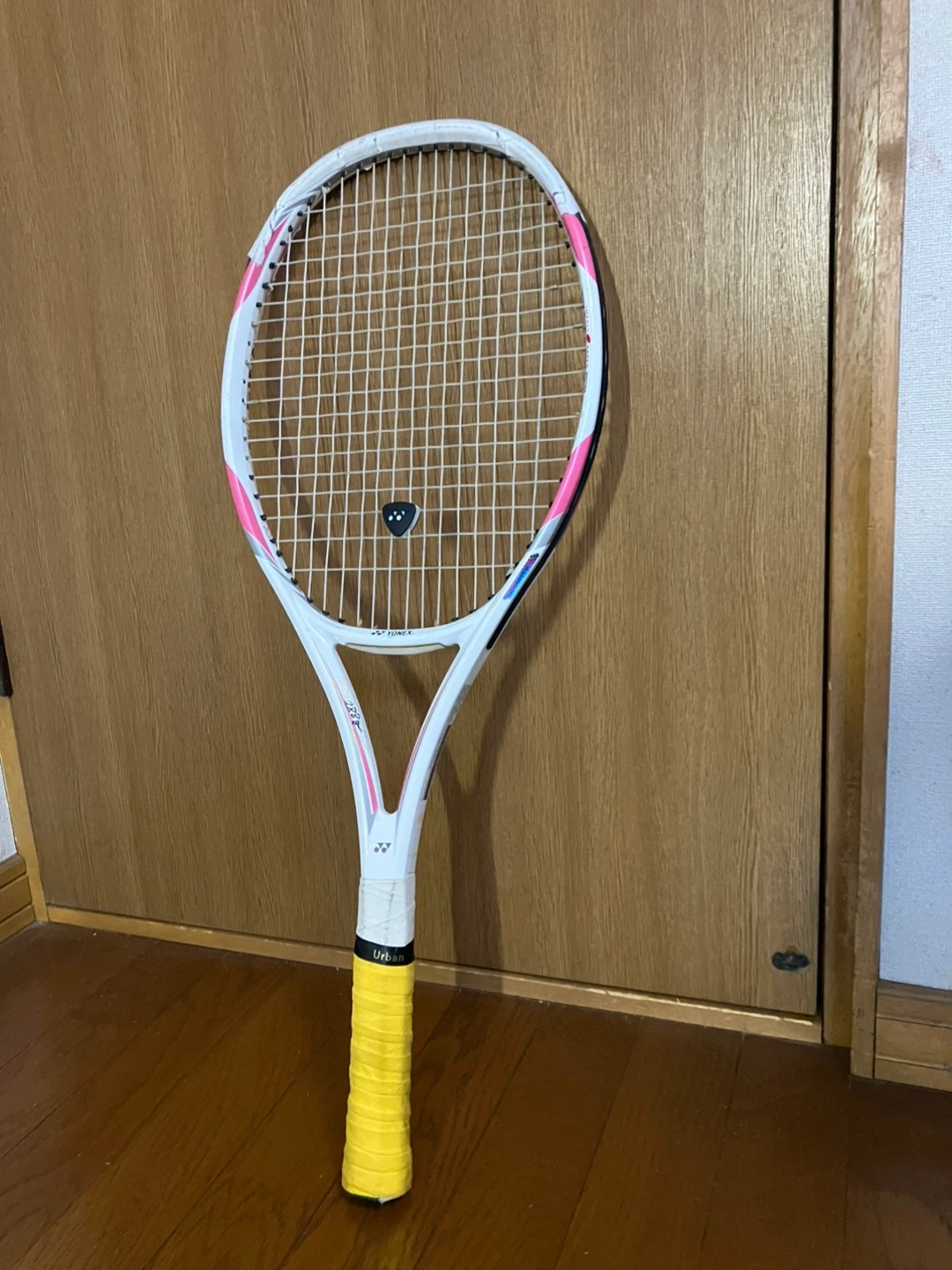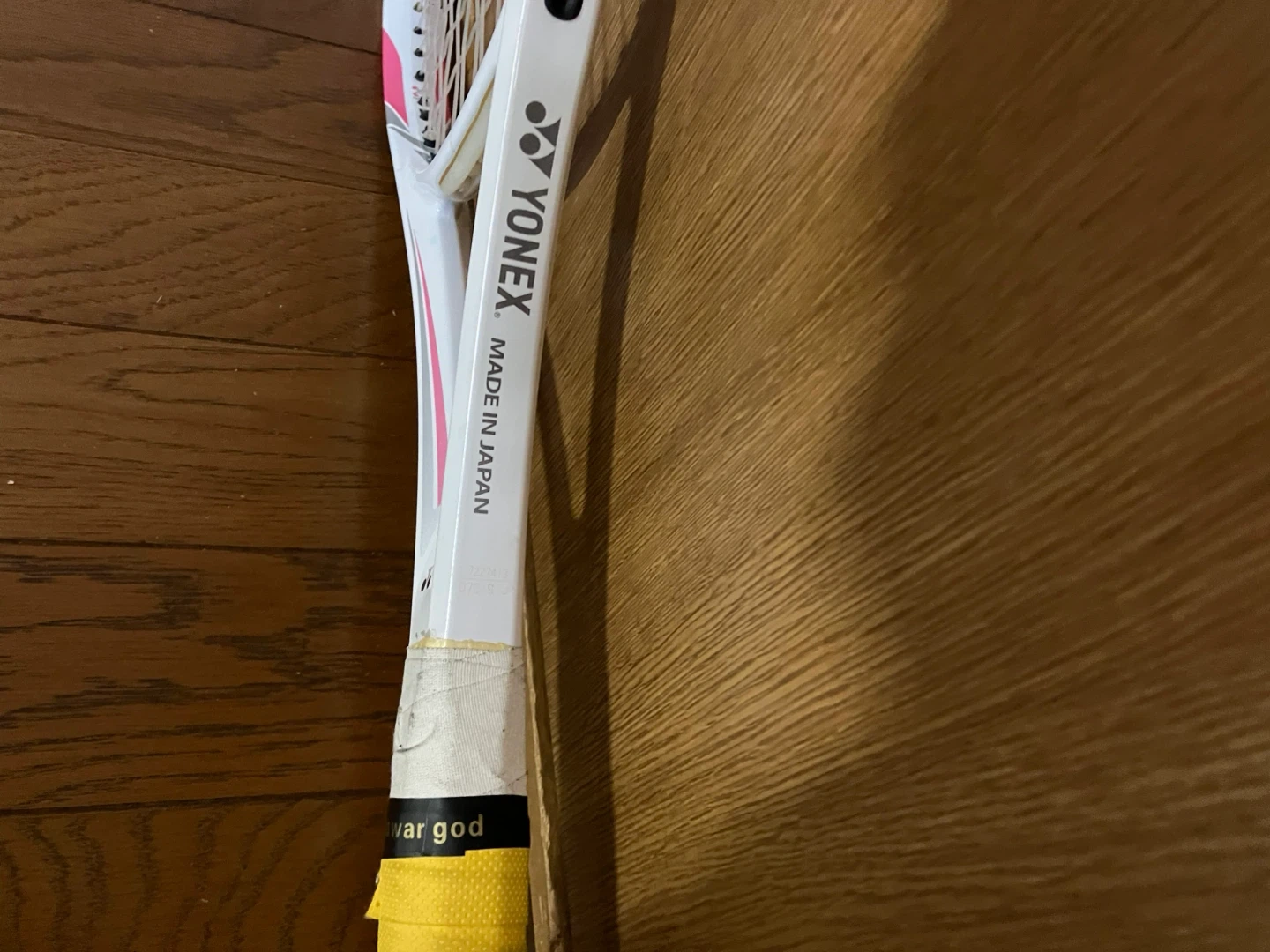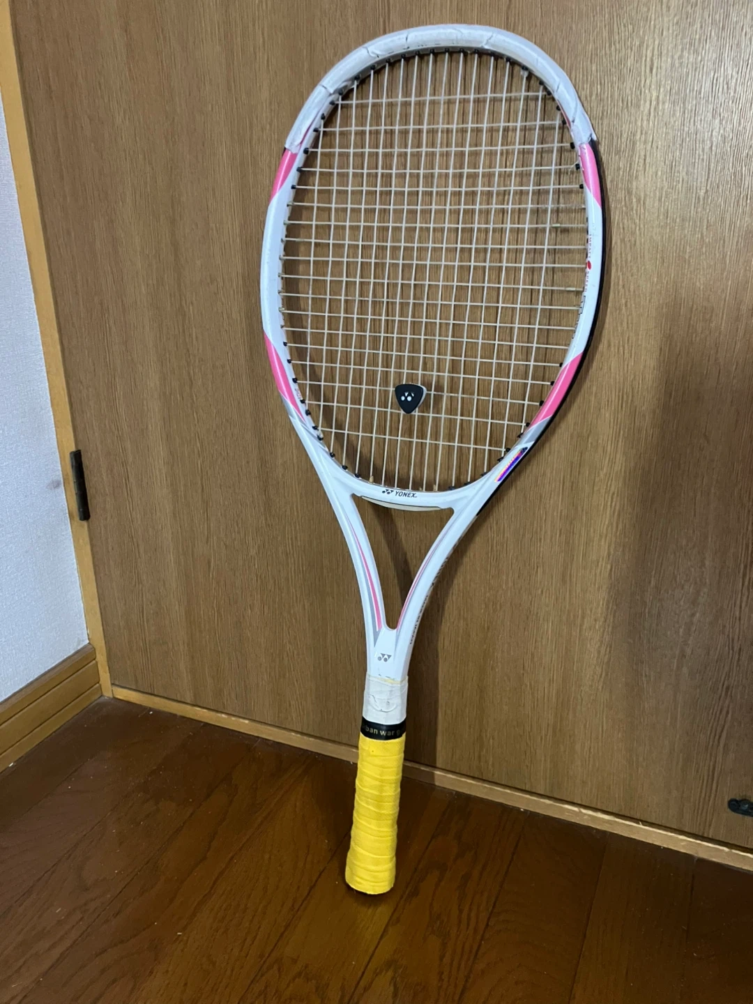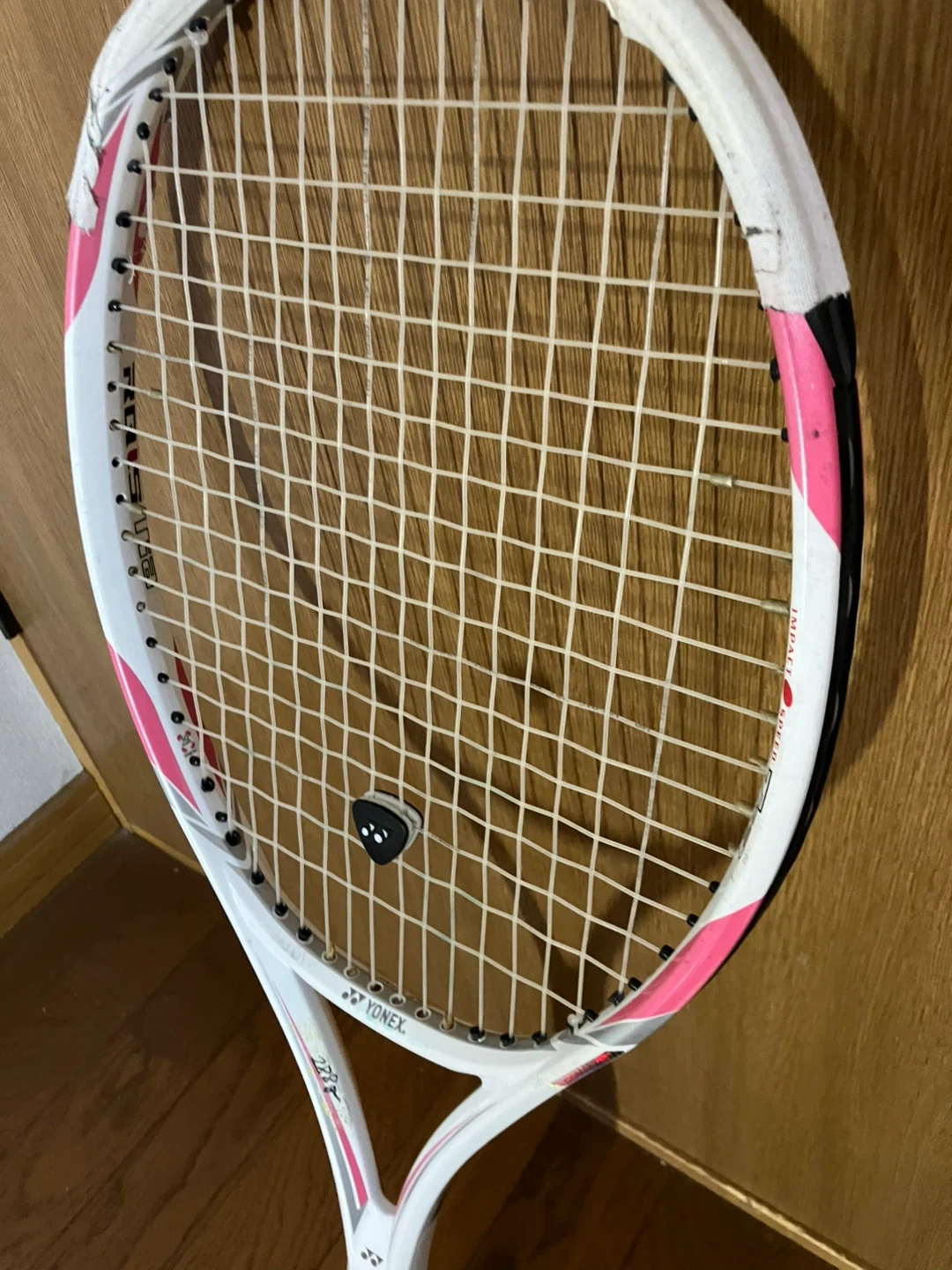 ヨネックスのテニスラケット です。 【情報】 ブランド:ヨネックス モデル:RQIS Tia フェイスサイズ:100inch 長さ:27.0inch バランスポイント:345mm 素材:グラファイト+カーボンナノチューブ 【状態】 ガットを張り替え(縦横とも50ポンドです)、グリップテープを巻き替えた後に、2日ゲームに使用しました。 ちなみに、ガット代金と張り替え料金で税込み4500円かかりました。 初心者から中級者まで十分に楽しめる、振り抜きの良いラケットです。 このままの状態でしばらく十分にお使いいただけると思います。 ご参考までに、グリップサイズはG2で、スケールで確認したところ、ウェイトは288gに仕上がっていました。 自宅近辺まで取りに来てくださる方限定でお願いいたします。 事前にご連絡をいただければ、曜日を問わず11時から18時の間お引き渡しできます。