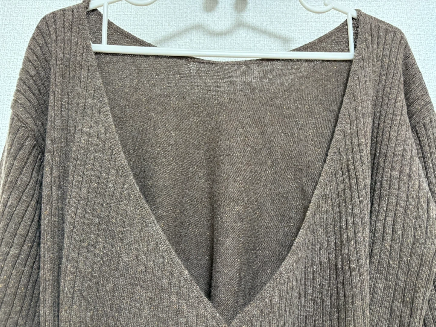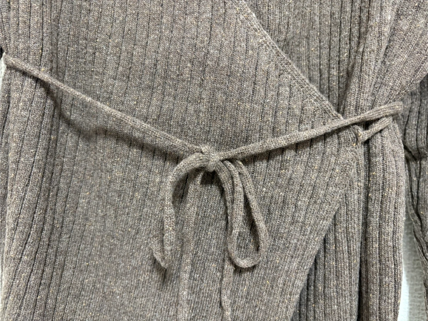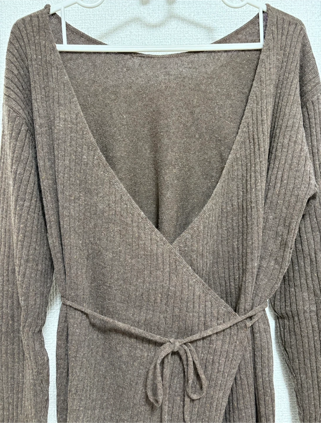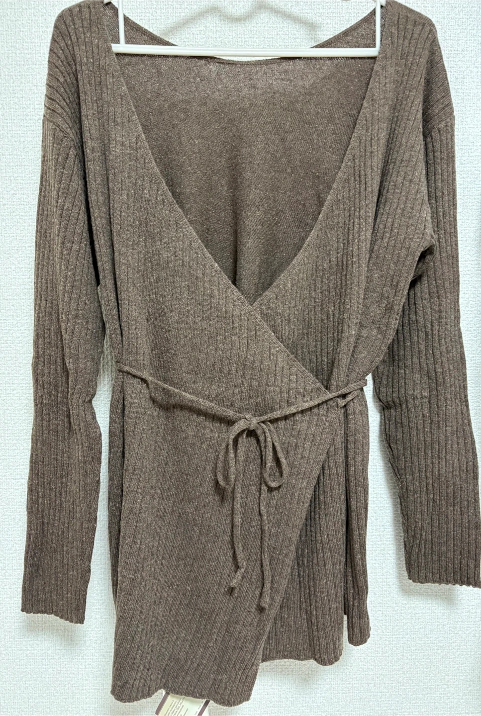 ラップニットカーディガン ベイクルーズストアオンラインにて購入しました。 落ち着いたブラウンの薄手のニットです。 これからの季節にいかがでしょうか。 クローゼット整理中。似たようなものが増えたため出品します。お好きな方がいらっしゃれば。よろしくお願いします。 色:ブラウン 身幅:約44cm 着丈62cm (誤差ご了承下さい) 素材:毛47%、綿27%、ナイロン26% 自宅保管品であることご了承ください。