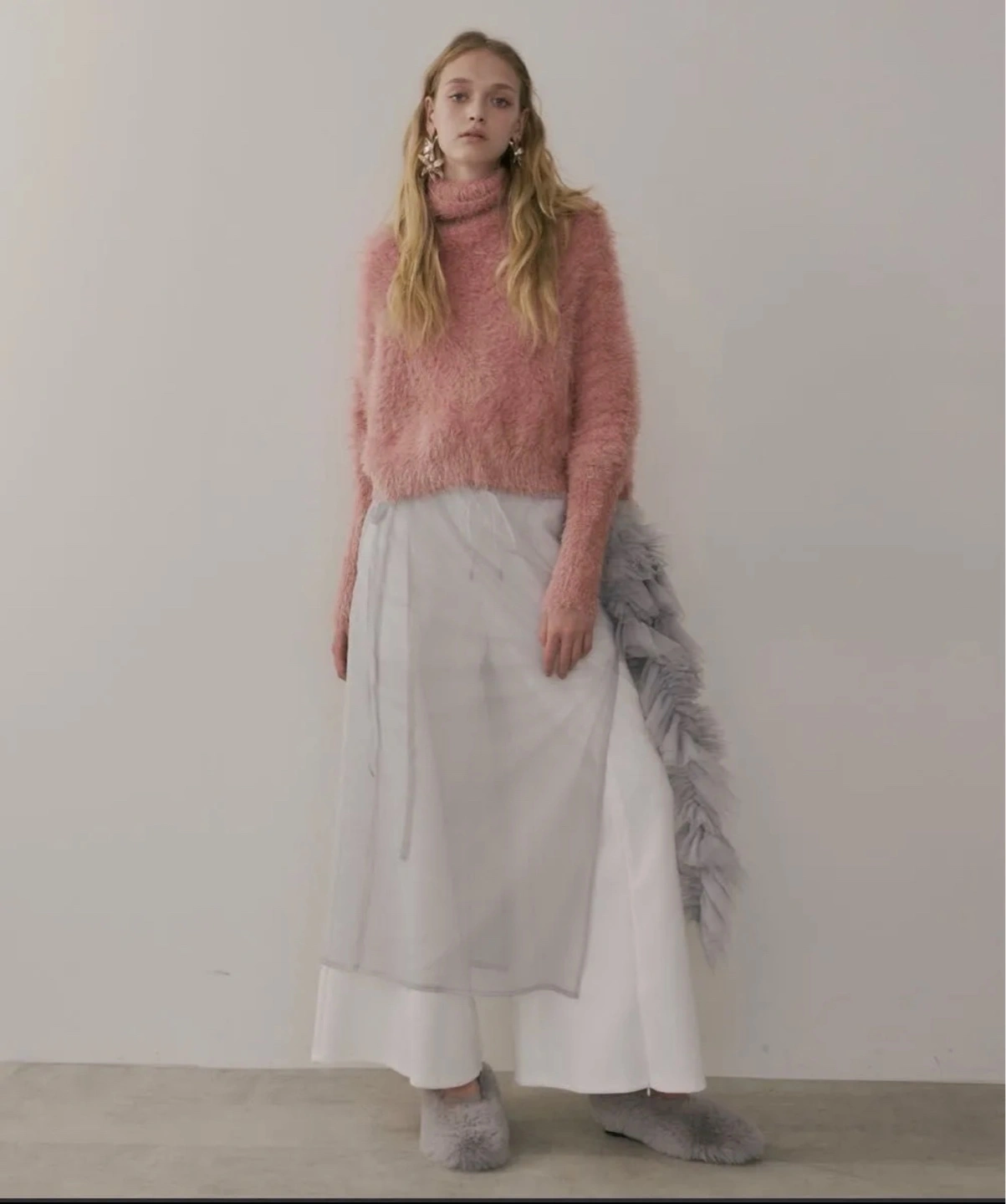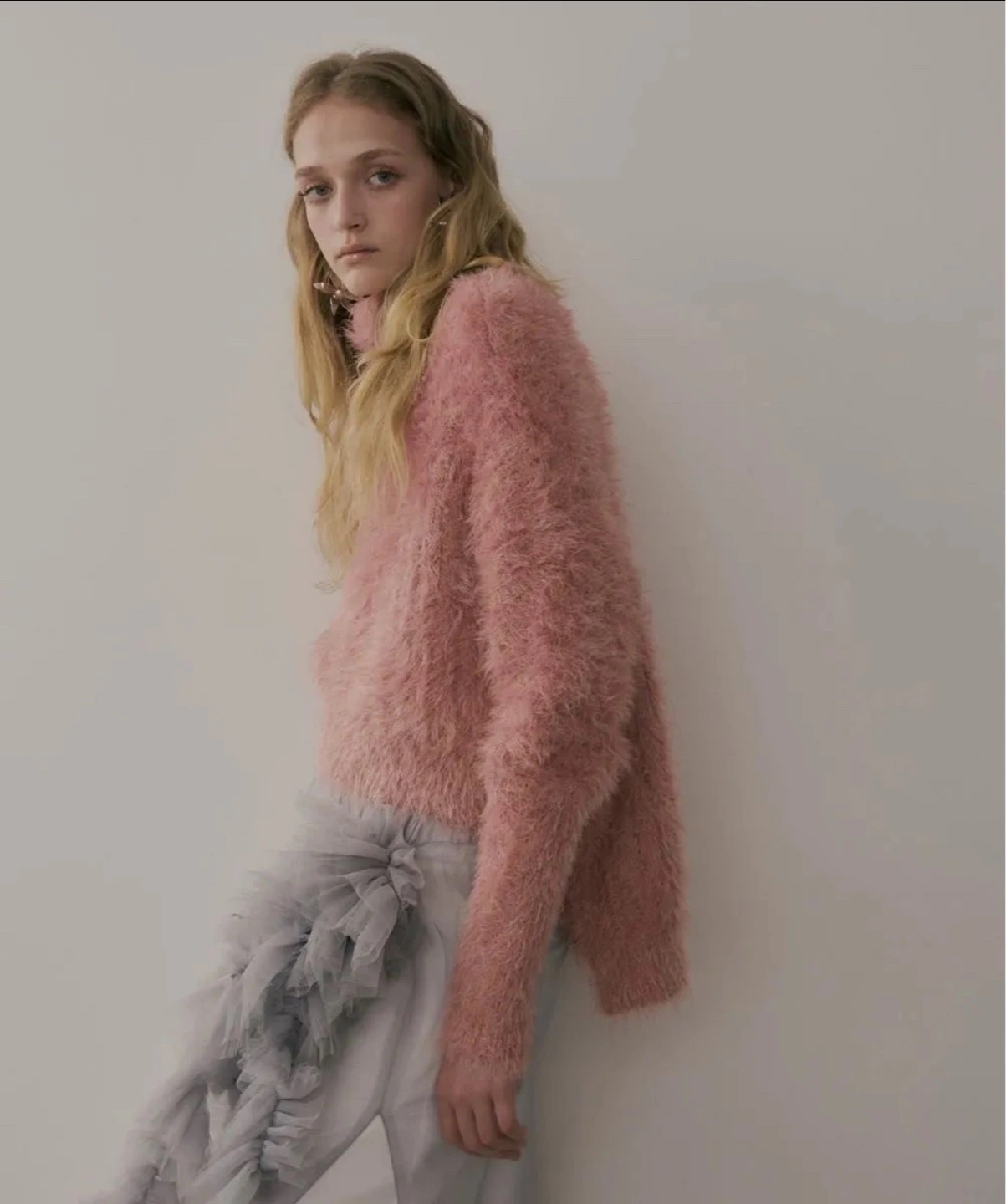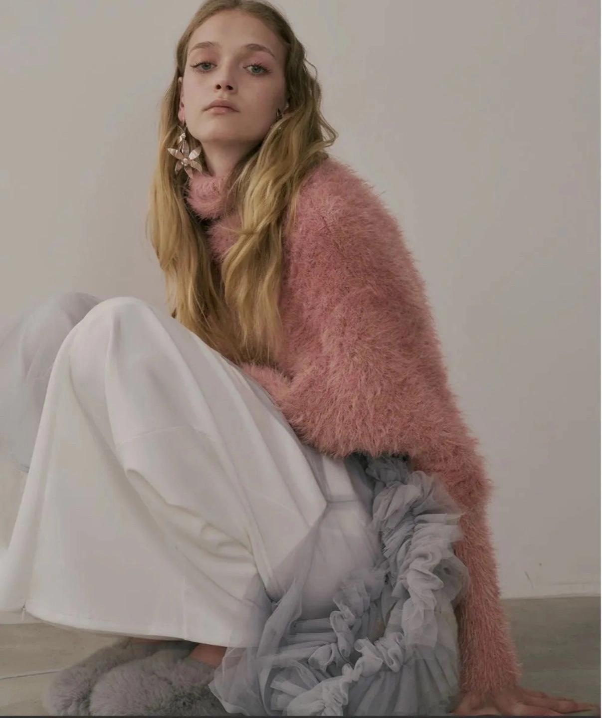 ラベルエチュード MIXフェザーヤーンボリュームタートルニット お色・コーラルピンク size・FREE 【新品・未開封・タグ付き】 お値下げ不可 ふんわり包み込むような見た目と着心地でデイリーユースにぴったりなニット。 ▽デザインポイント 長めの毛足を持つフェザー糸を使用し 柔らかな肌触りとしっかり詰まった編み地で 寒い冬も暖かく過ごせるベストアイテム。 首回りを優しく包み込むオフタートルニットのデザインで、 タートルネックが苦手な方 にもおすすめ。 カラーはアイスベージュ(ライトベージュ)、グレー、ピーチ(コーラルピンク)、ネイビー。 定番〜カラー映えする4色展開です。 ▽ディティールポイント 身幅やアームホールを広げてゆったりとしたサイジング。 フロントはやや短め丈で、ボリュームのあるシルエットとバランス良◎ サイドにスリットを入れて後ろ丈が長めの着丈になっているので ヒップラインをしっかりカバーしつつインアウトのアレンジも自由自在。 二の腕はふんわりボリューム袖で 手元にかけては長めなリブを入れて タイトなシルエットを出すことでスッキリとみせてくれます。 ********************* 透け感:なし 生地の厚さ:厚手 裏地:なし 伸縮性:あり ********************* FREE (M,Lサイズ相当) 身幅:61/着丈:50/54/ゆき:79 素材 ポリエステル52% ナイロン48%