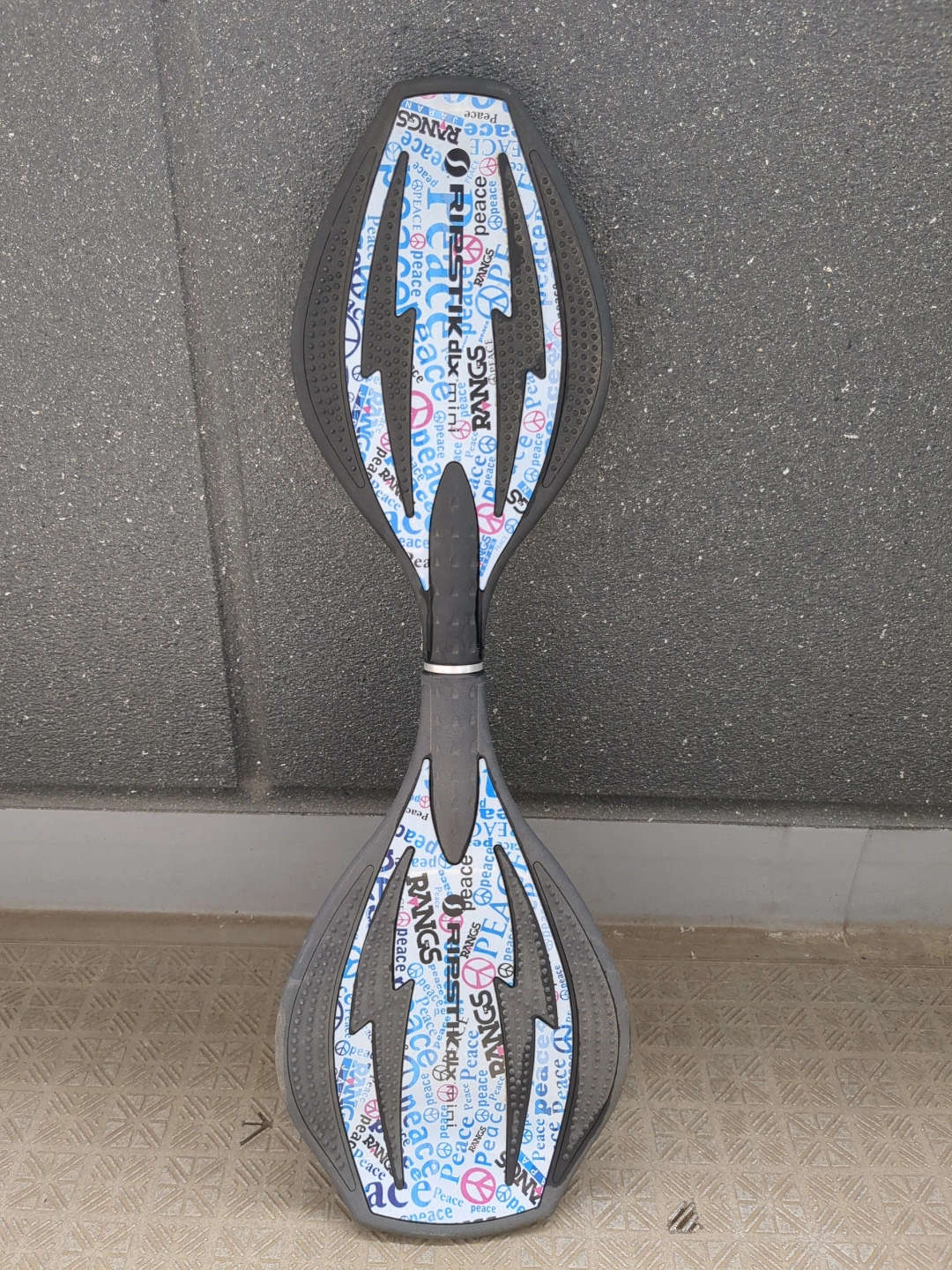 ・リップスティックミニ ・色:黒、青、白 ・中古品 リップスティックデラックスミニは加速やカーブを楽しみながら、単なる遊びで終わるだけでなく体幹トレーニング、バランス感覚を身に付けることができ、シェイプアップにも役立ちます。大人から子供まで楽しめるサイズです。 公園などで、いかがでしょうか。 ブランド:ラングスジャパン 色:ピース(ブラック、ホワイト) 商品の重量:約2㎏ 商品寸法(長さx幅x高さ)68 x 22 x 12 cm 対象年齢:子供、大人 耐荷重:79kg キャスター部分に汚れがあり使用感はそれなりにありますが、問題なく乗れて遊びやトレーニングができます。