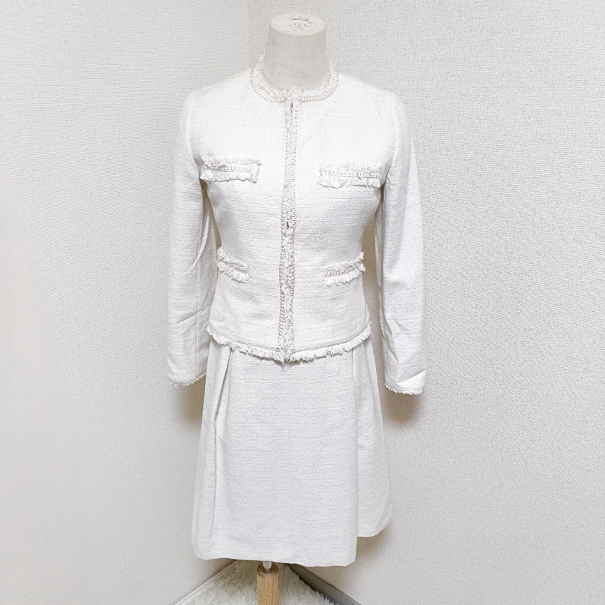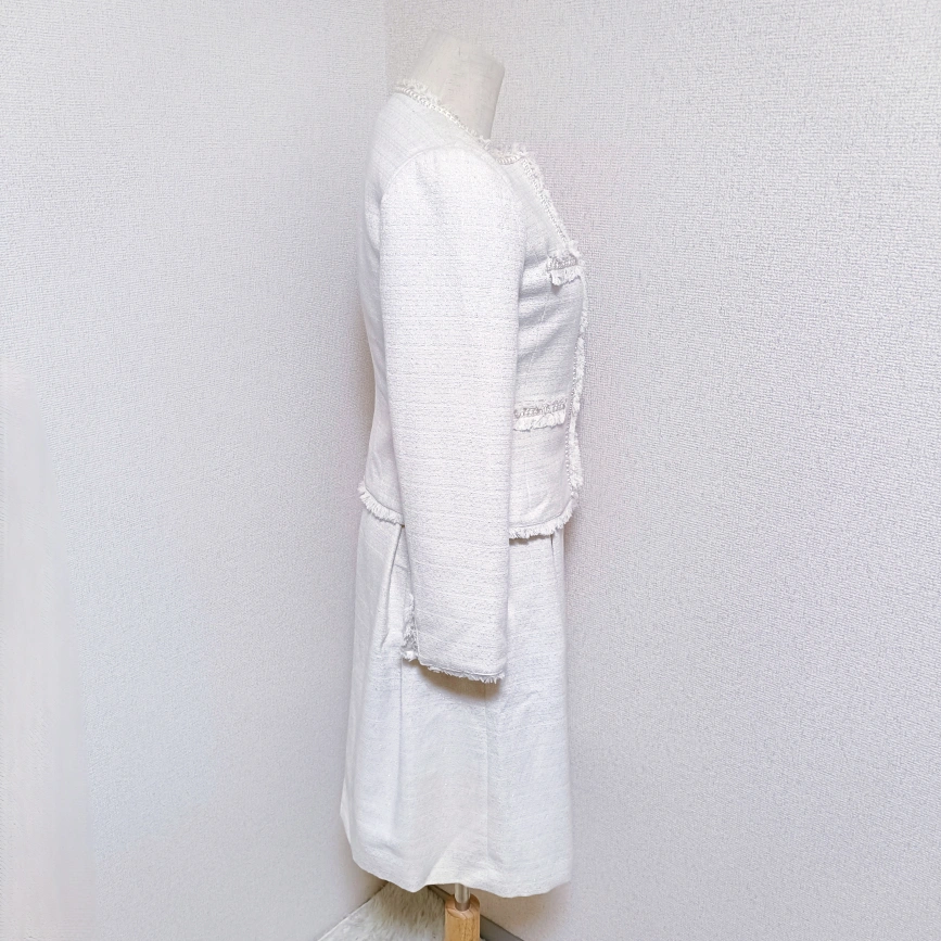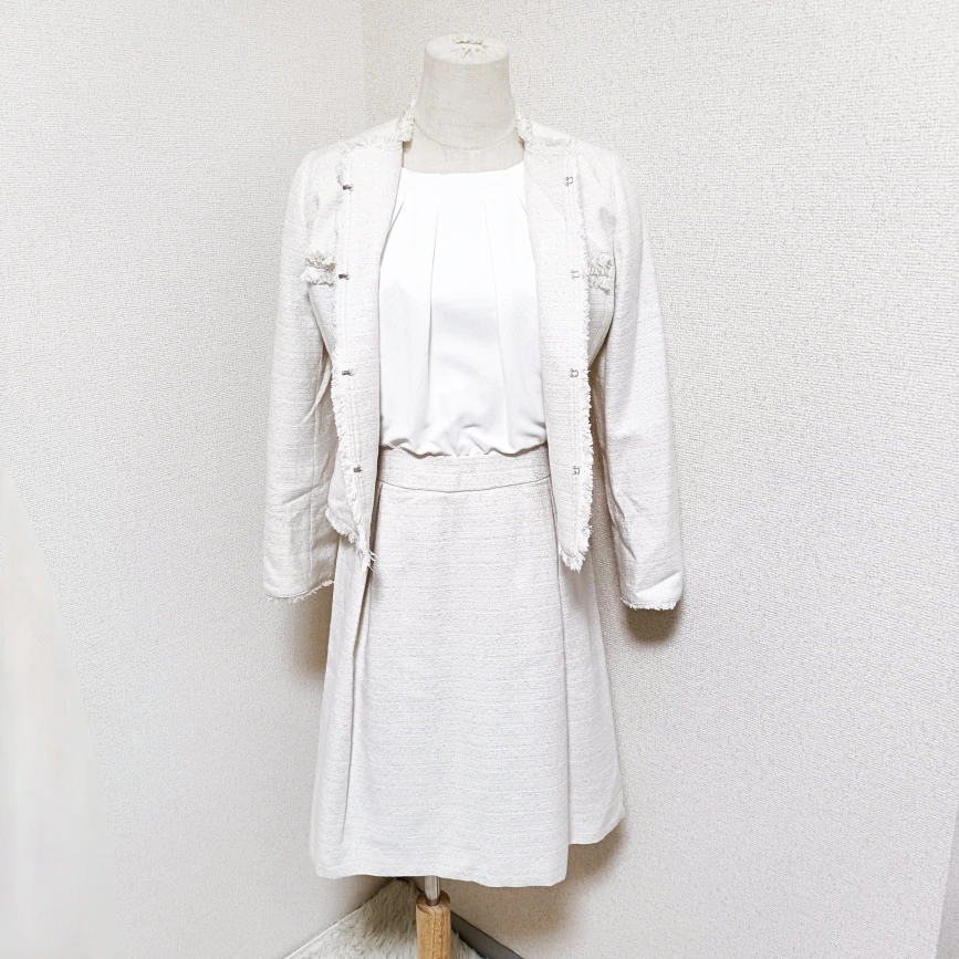 □商品名□ 美品 アンサンブル セットアップ ツイードノーカラージャケット 半袖ワンピース ベージュ 36 冠婚葬祭 卒業式 入学式 レディース LE SOUK(ルスーク)の上品なツイード素材が美しい、ノーカラージャケットと半袖ワンピースのセットアップです。冠婚葬祭はもちろん、卒業式や入学式など、フォーマルなシーンで活躍する一品です。 #joymaxお得なプロフへ #ゆうの古着屋さん_レディースセットアップ □ブランド□ LE SOUK ルスーク □表記サイズ□ 36 Sサイズです □実寸サイズ(cm) □ 【平置きサイズ】 ジャケット 着丈:49 肩幅:38 身幅:41 袖丈︰56 ワンピース 着丈:90 肩幅:56 身幅:43 袖丈:19 ※実寸につきまして多少の誤差はご了承ください。 ※表記サイズだけではなく実寸のサイズをご確認ください。 □カラー□ グレージュ系 □コンディション□ 目立った汚れやダメージなど特にございません。 ※汚れはできる限り写真にて掲載しております。まずは画像をご確認ください。 出品一覧→#joymaxお得なプロフへ どうぞよろしくお願い致します。 □商品管理番号□ M1-k-4124