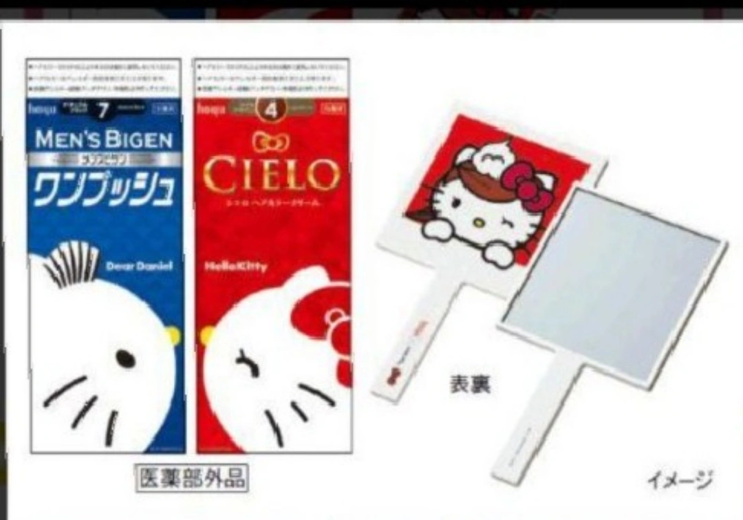 ホーユーとハローキティのキャンペーンの当選品になります。 50名様なのでレアだと思います。 ダニエルくんパッケージのメンズビゲン 7 ナチュラルブラック キティちゃんパッケージのシエロ ヘアカラークリーム 4 ライトブラウン 非売品 ハローキティ 手鏡 鏡は割れてないか確認する為1度開けました。 1年以上箱に入れ て押入れに保管していた物なので神経質な方はごめんなさいm(_ _)m 受け渡し場所 自宅マンション前(亀戸天神近く) 火曜〜金曜 14〜18時くらい