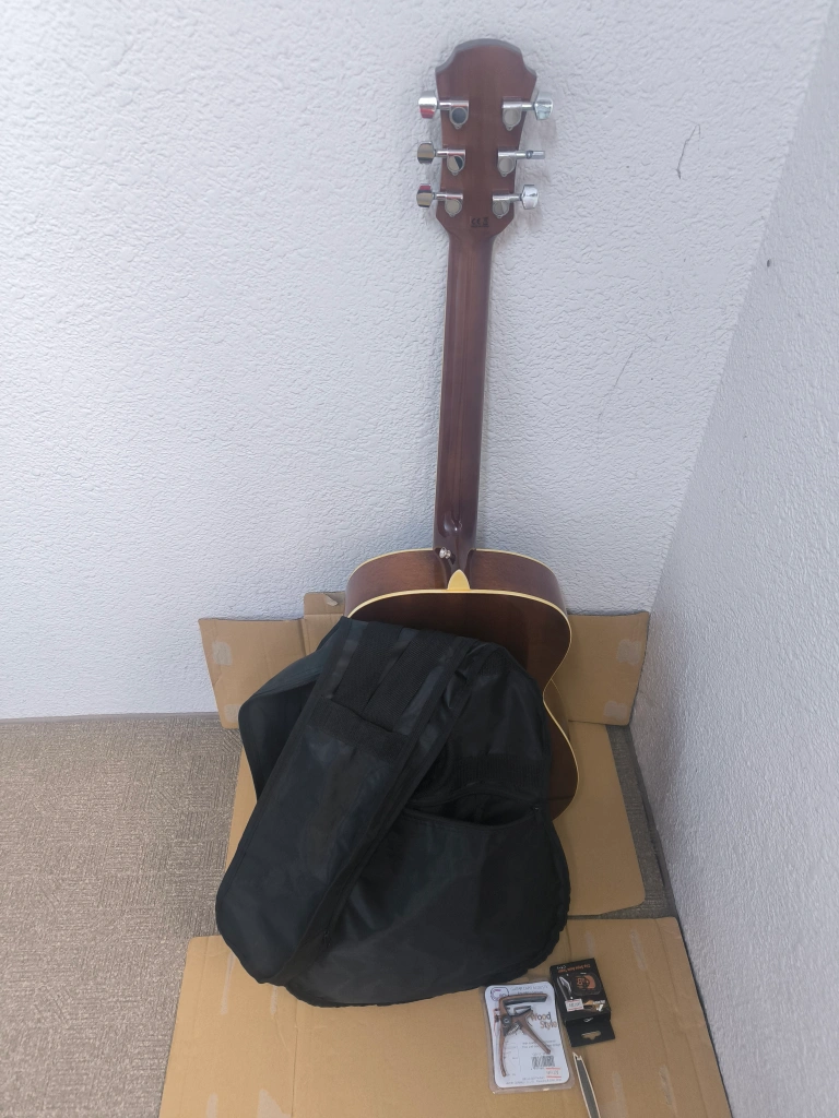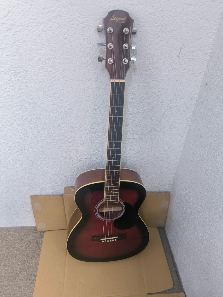 レジェンドのアコースティックギターです 【情報】 ブランド:レジェンド 【状態】 使用感はありますが、目立つ傷はありません。 【付属品】 ギターケース、カポ、チューナーが付属します。ケースの全長は約106cmです。 中古品であることご了承ください