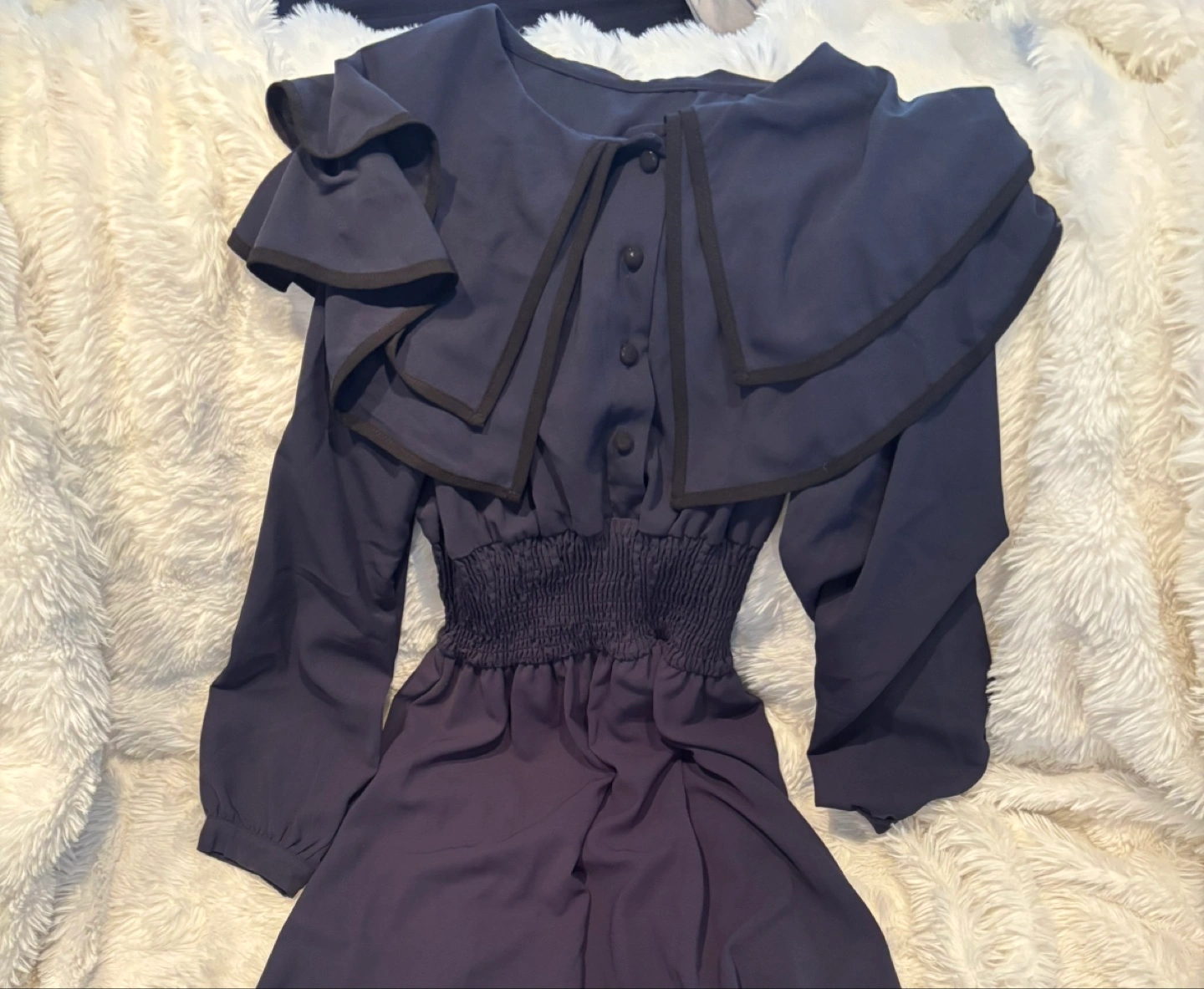ユニクロ ワンピース Lサイズ 花柄 黒 シフォン