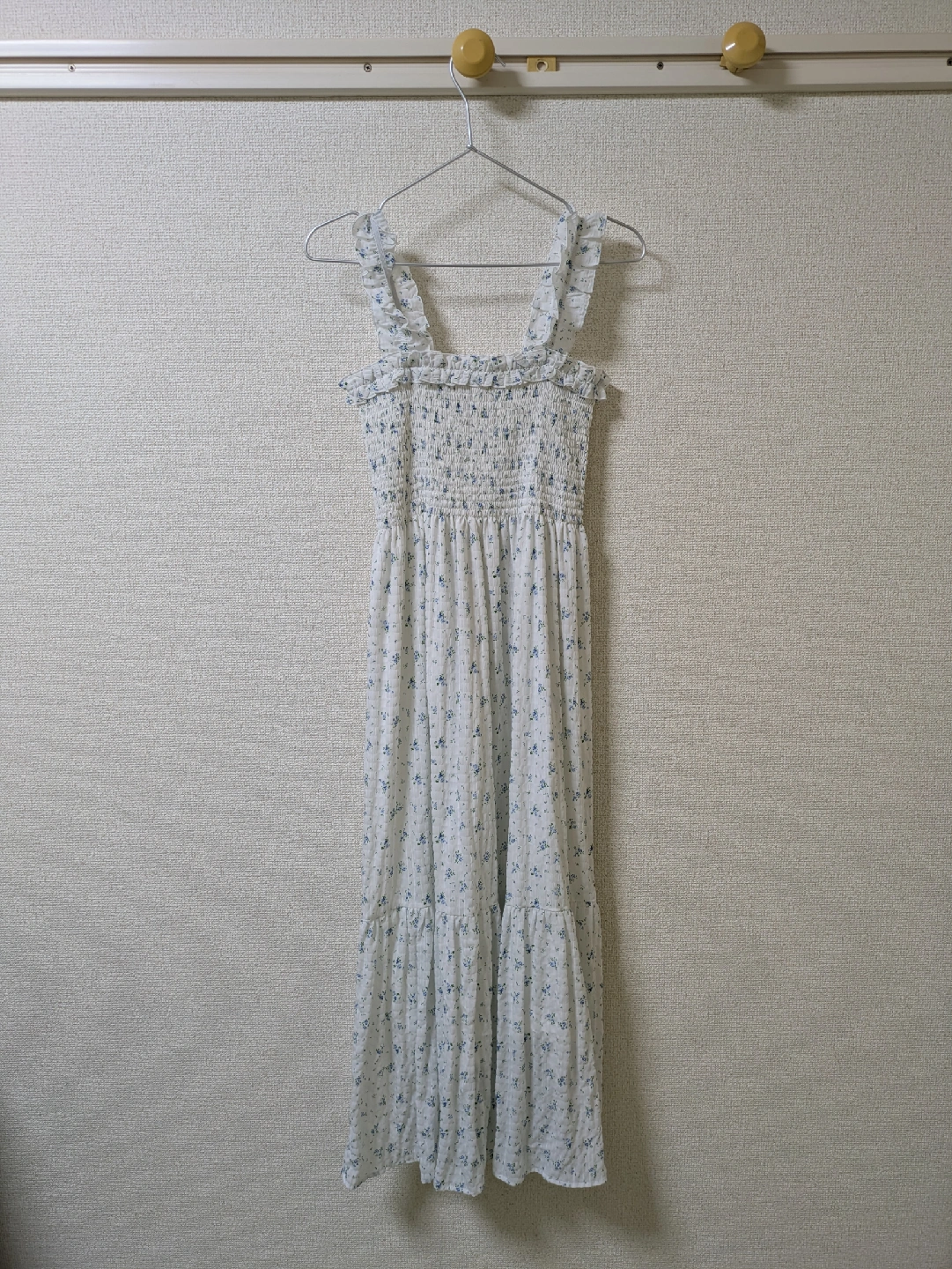 花柄のワンピースです。 ・色:白地に青色の花柄 ・状態:使用感少なめ ・特に目立つ傷や汚れなし 中古品であることご了承ください。 お支払いは、現金でお願いします🙏 お釣りが必要な場合は、事前にチャットにてご連絡いただけると幸いです。