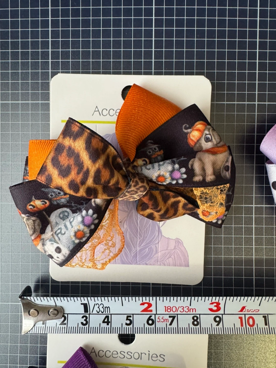 ハロウィンの季節にぴったりな、存在感たっぷりのハンドメイドヘアゴムです。 約10cmの大きめサイズで、まとめ髪やポニーテールを華やかに彩ります。 🕸️ 特徴 • 一点一点手作りのため一点物 • 約10cmの存在感でコーディネートのアクセントに • ハロウィンパーティーやイベント、普段使いにもおすすめ 🎃 お子様から大人の方まで楽しめるデザインで、仮装アイテムとしても大活躍します。