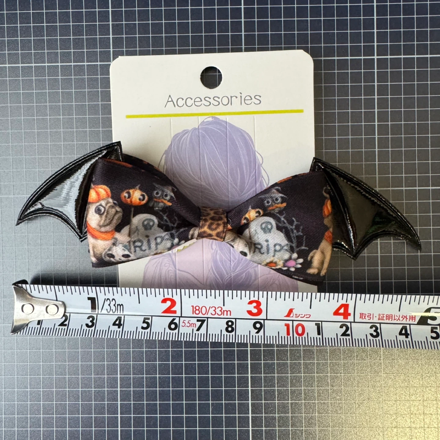 ハロウィンの季節にぴったりな、存在感たっぷりのハンドメイドヘアゴムです。 約15cm(羽なしサイズ9cm)の大きめサイズで、まとめ髪やポニーテールを華やかに彩ります。 🕸️ 特徴 • 一点一点手作りのため一点物 • 約15cmの存在感でコ ーディネートのアクセントに • ハロウィンパーティーやイベント、普段使いにもおすすめ 🎃 お子様から大人の方まで楽しめるデザインで、仮装アイテムとしても大活躍します。