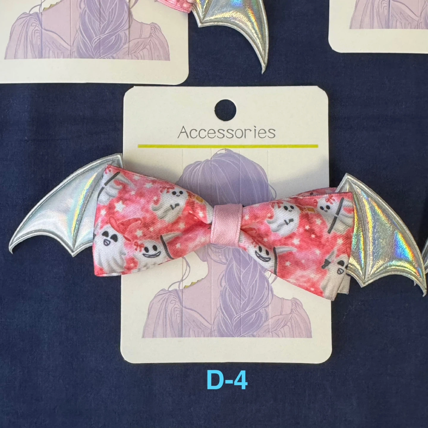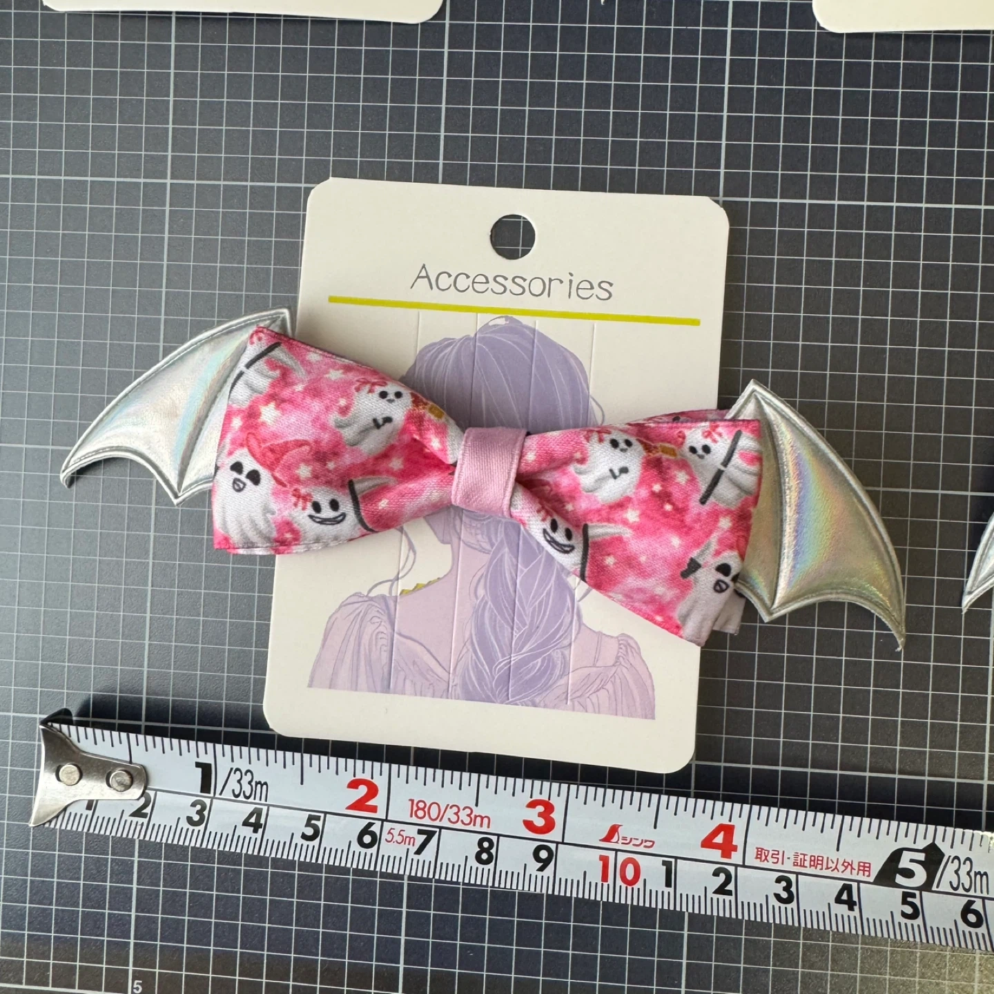 ハロウィンの季節にぴったりな、存在感たっぷりのハンドメイドヘアゴムです。 約15cm(羽なしサイズ9cm)の大きめ サイズで、まとめ髪やポニーテールを華やかに彩ります。 🕸️ 特徴 • 一点一点手作りのため一点物 • 約15cmの存在感でコーディネートのアクセントに • ハロウィンパーティーやイベント、普段使いにもおすすめ 🎃 お子様から大人の方まで楽しめるデザインで、仮装アイテムとしても大活躍します。