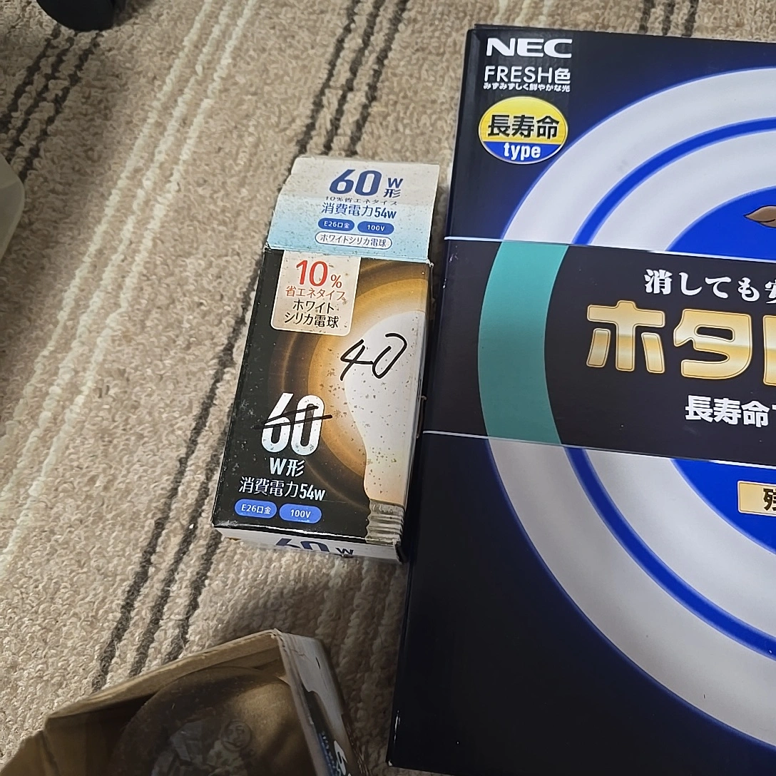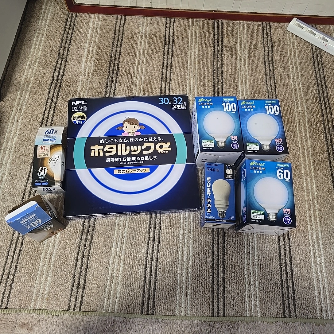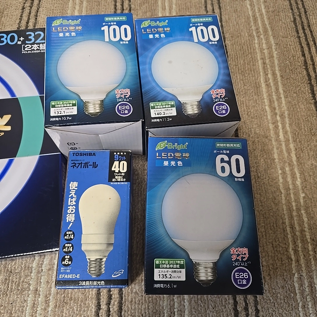 60w形 消費電力54w E26口金 100v クリア電球 40w形 消費電力54w E26口金 100v ホワイトシリカ電球 ホタルックα 30形+20形 2本組 ネオボール 40w形 消費電力9w 3波長形昼光色 LED電球 60w E26口金 消費電力6.1w 昼光色 LED電球 100w E26口金 消費電力10.9w 昼光色 LED電球 100w E26口金 消費電力11.2w 昼光色 未使用かと思います。 確認ができません。 中神の自宅まで取りに来ていただける方