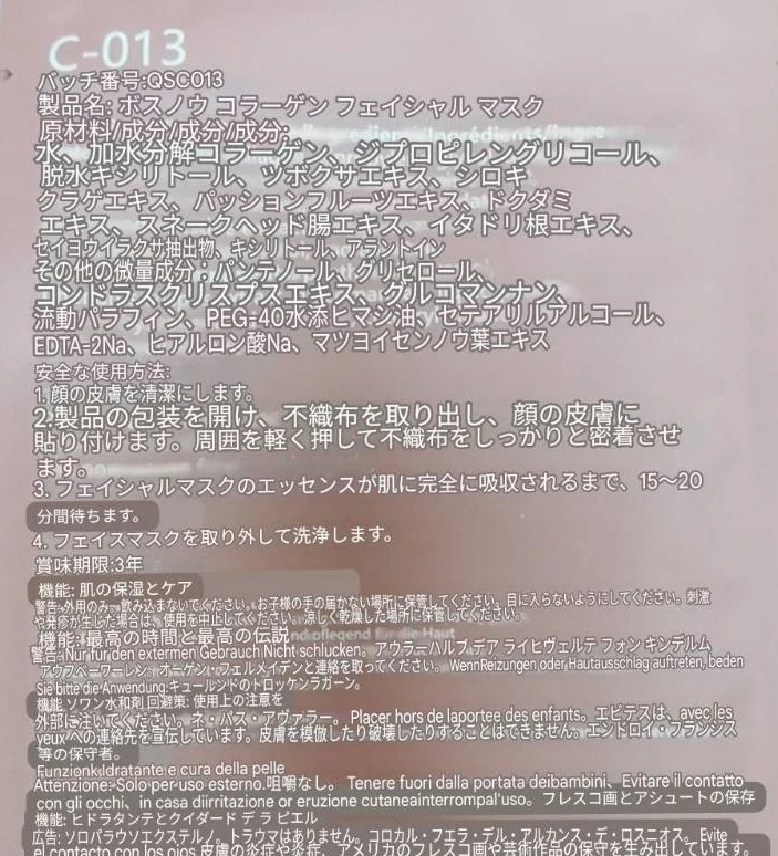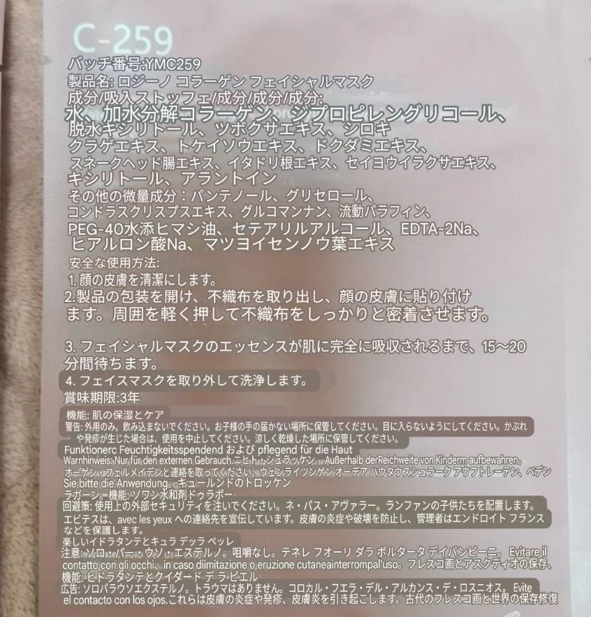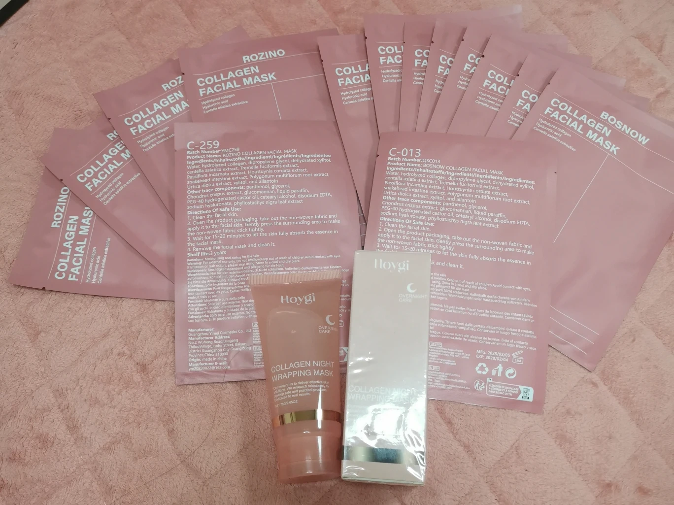 Hoygi コラ ーゲン ナイト ラッピング マスク ∟未開封1個 ∟2回使った中古1個 ボスノウとロジーノ hydrolyzed collagen(加水分解コラーゲン) ∟フェイスパック13枚 MERCILEN ∟カメリヤ保湿コラーゲンマスク9本 ボスノウ ∟コラーゲンクリスタルリップマスク5枚 深い潤いと弾力を与えるために特別に設計されています。植物コラーゲンとヒアルロン酸を配合し、肌に必要な栄養をしっかりと補給します。 【使用方法】 1パック(6g)を取り出し、清潔な肌に均等に塗布してください。約10〜15分後に洗い流すか、軽く拭き取ってください。