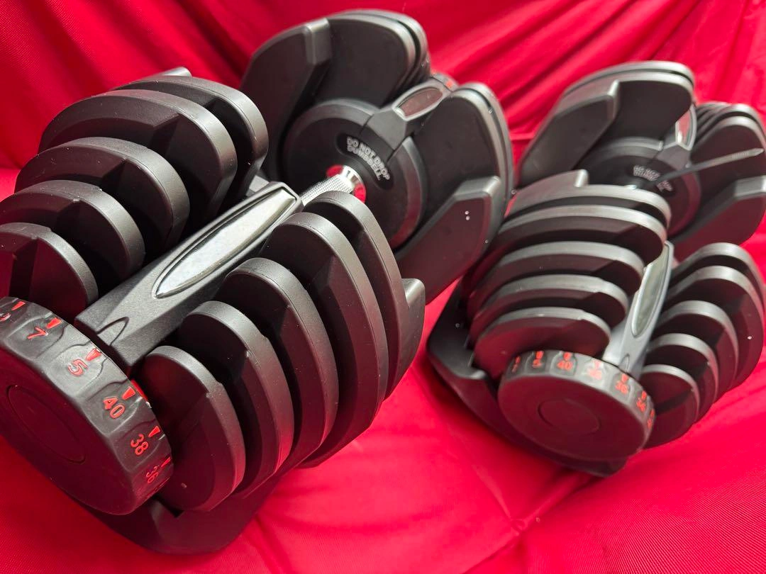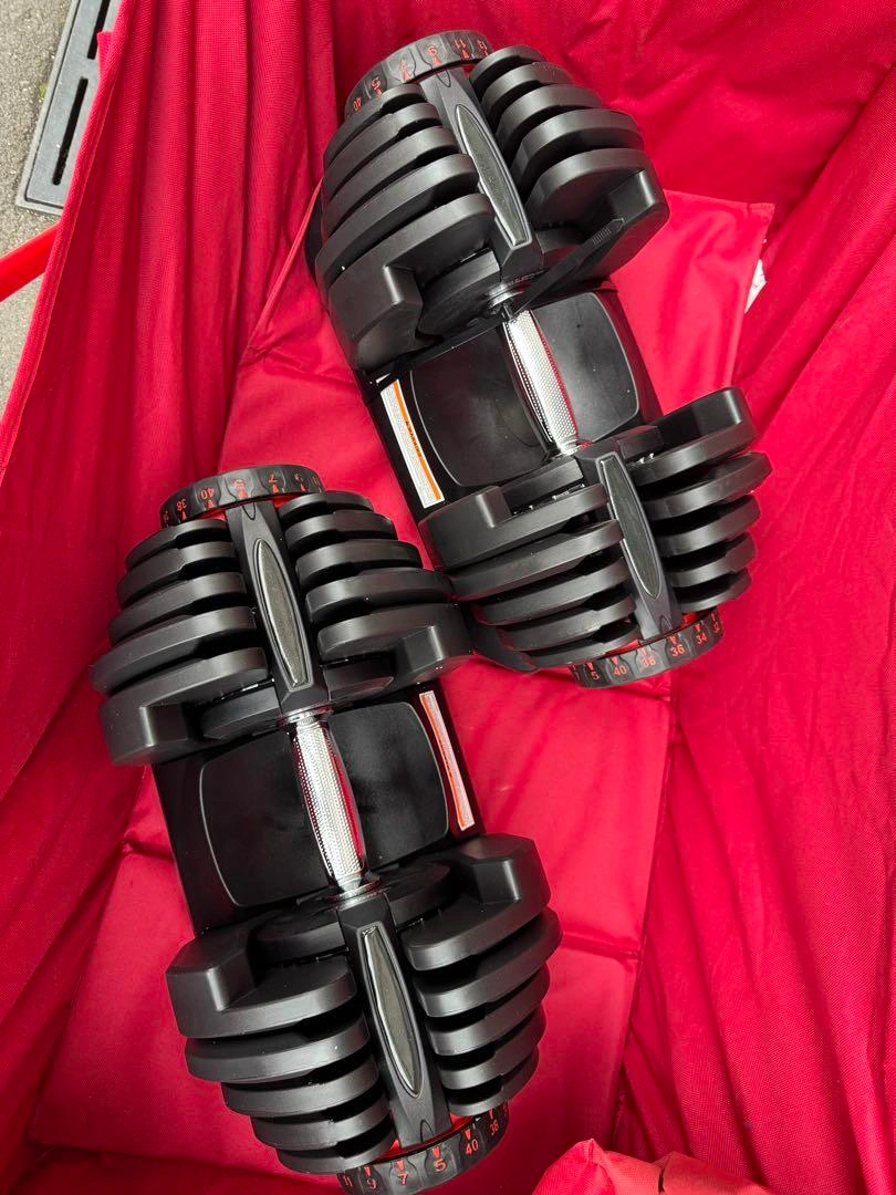 可変式ダンベル 40kg 2個セット です。 直接引き取り限定です。 東京、埼玉、千葉、神奈川でお近くでしたらお運びします。 箱から開けただけです。 ・可変式(アジャスタブル)ダンベル詳細 5Kg〜40Kgまで好みの重さに変えられる可変式ダンベル。 場所を選ばず手軽にハードトレーニングできます。 両腕を鍛えられる 80kgまで対応 ウエイトは左右毎に5〜40kgまで17段階の調節が可能。 両腕を合わせると最大80kg! 購入金額36980円 【こんな方におすすめ】 ・ジムに行く時間がない。 ・隙間時間にトレーニングしたい。 ・ダンベルが欲しいけど収納場所に困る。 ・もっと手軽にハードウェイトトレーニングしたい。 ・シェイプアップしたい。 ・健康的な体を手に入れたい。 ご希望の方はお気軽にご連絡ください。