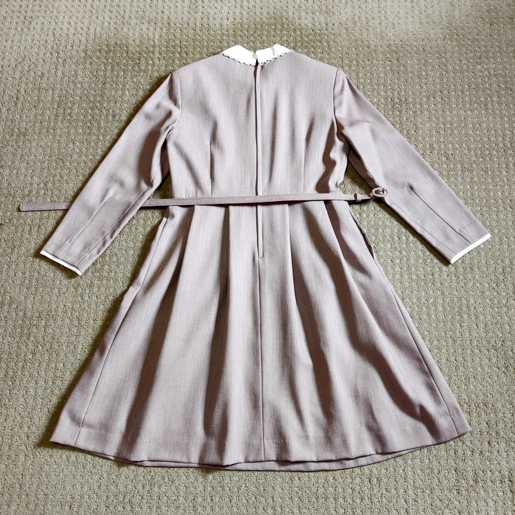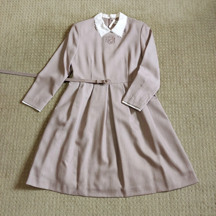 すみません、他サイトにて売却済みでした。 .................... ウール100%の上品で上質のお洋服です。 ベルト付き 秋、春 クリーニング済みですが、白い襟に少々汚れが見られます、遠目にはわかりません 総裏地つき 日本製 着丈90センチ 肩幅36センチ ウエスト38センチ 落ち着いたブラウンベージュ とても軽く、シワになりません大事に保管していたので、ネオパラの香りがします。 卒業式 セレモニー 発表会 お出かけ