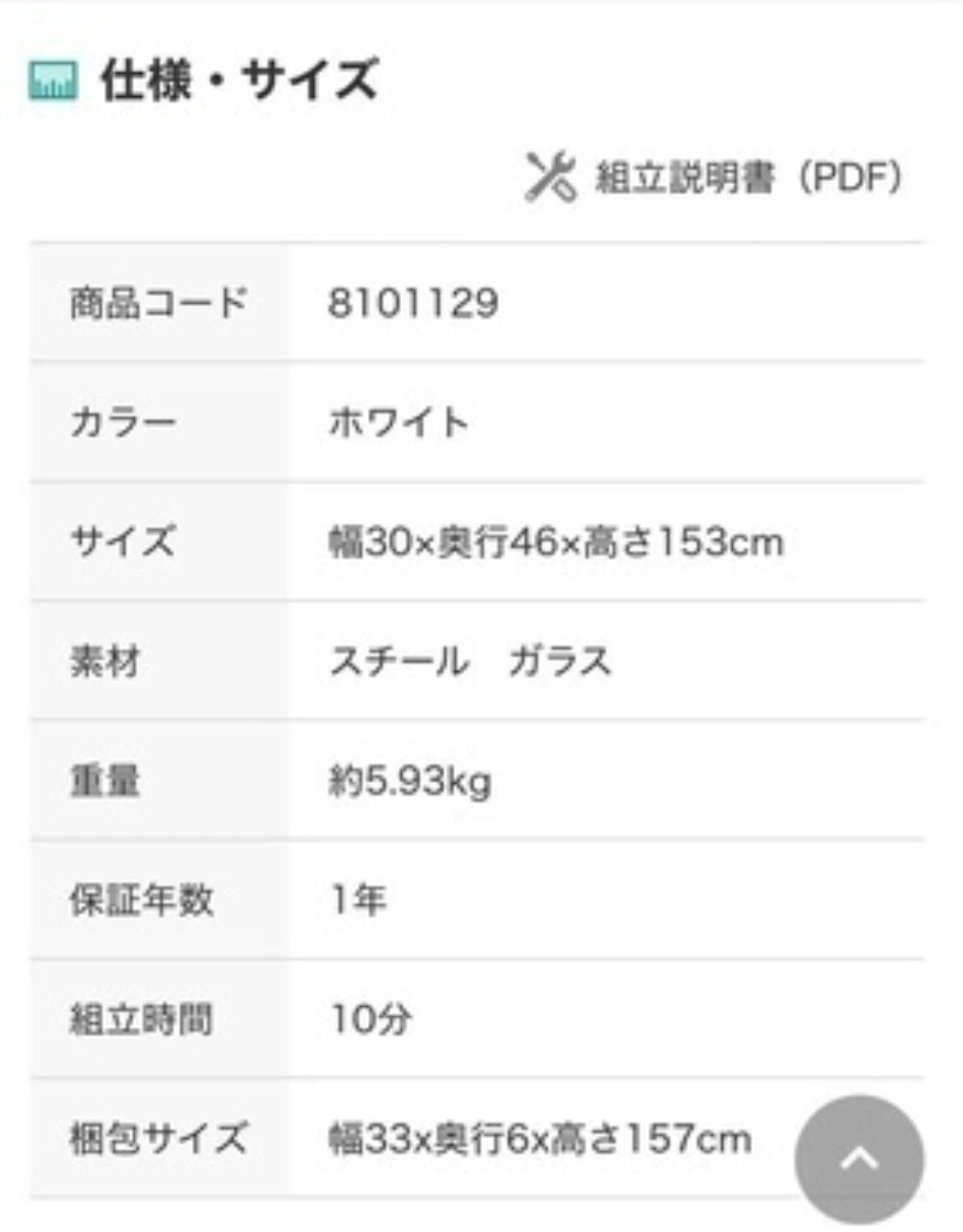 • サイズ・寸法幅30×奥行46×高さ153cm