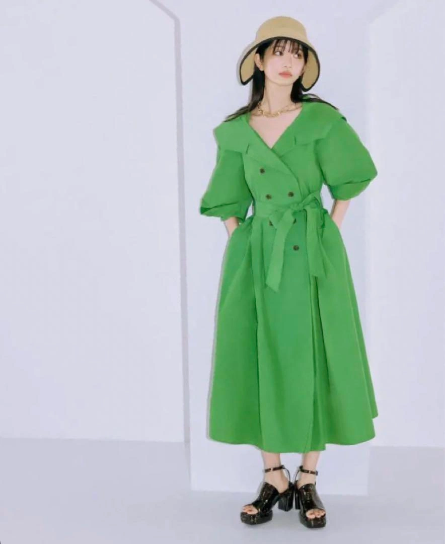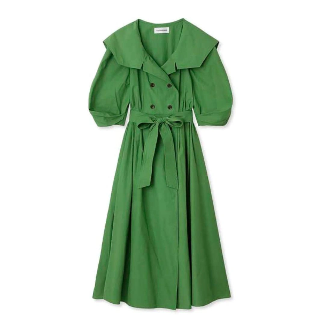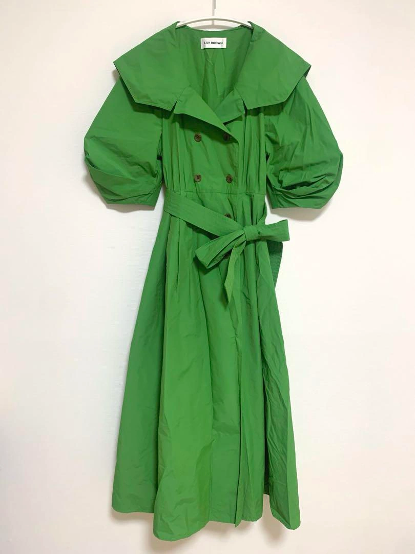 12,800円→お値引き致しました! 【定価】19,910円 【サイズ】0 【カラー】グリーン 024(GRN) 【素材】表地 コットン54% ナイロン46% 裏地 ポリエステル 【詳細】LILY BROWN(リリーブラウン)デコルテトレンチワンピース 程よい抜け感が洗練度を高めるトレンチワンピース♡ ○ Design/Styling トレンチライクなデザインを落とし込んだ、クラシカルな雰囲気のワンピース。デコルテ部分を開き気味にすることで女性らしい抜け感をプラス。肩を覆うようなビッグカラーがトレンド感を高めてくれます。 裏地をド ッキングしているので1枚でも着用でき、インナーにタンクなどをレイヤードしてもOK。ウエストのベルトがメリハリを与えてくれるので、ボリュームがありながらもスタイルアップが期待できます。 ○ Fabric ややハリ感のあるタフタ素材を使用し、ボリューム感のあるシルエットをメイク。ベーシックカラーのオフホワイト、ネイビーに、差し色にぴったりなグリーンを加えた3色展開でお届けします。 【状態】お出かけに数回のみの着用です。 ボタンの糸が少し伸びている箇所があるのと、よく見たら裾に子供がボールペンで描いてしまったような汚れがございました>< 中古品・自宅保管のため、神経質な方はご遠慮下さい。 ロングワンピース ロングドレス トレンチコート パフスリーブ Vネック デート パーティー 緑ワンピース Green