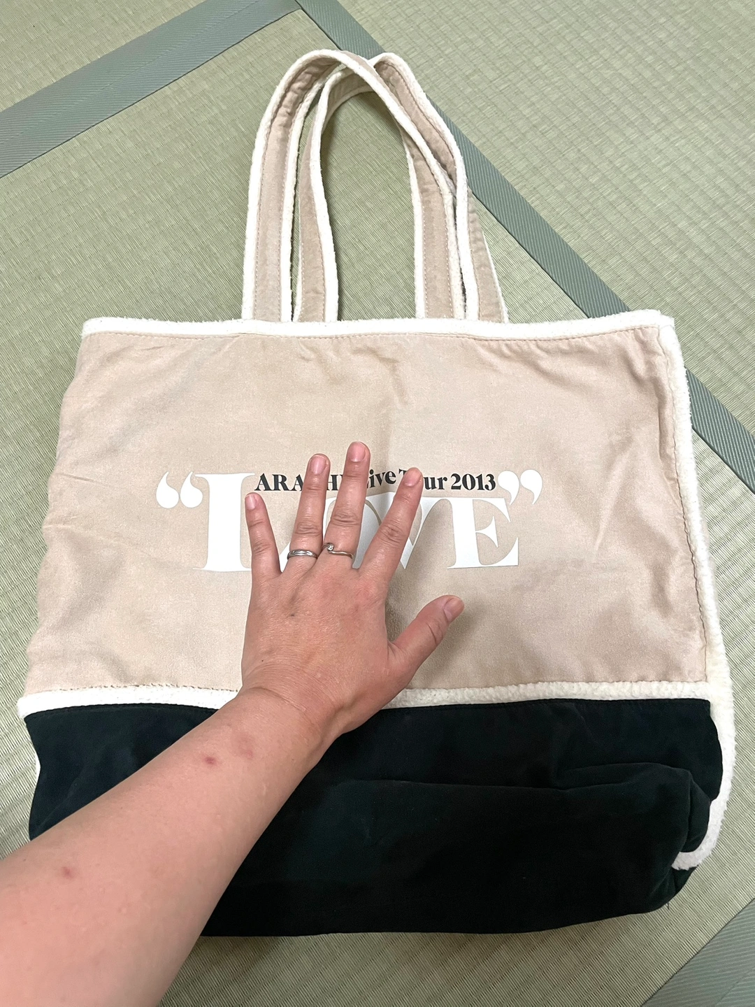 嵐 LIVEツアー 2013 LOVEの時の グッズのバッグです 大容量なので、お出かけの際 これ1つで、何でも入ります♪ 内側に携帯など入れられる 内ポケットがあります ふわふわもこもこした感触のバッグです LIVEの時くらいしか使ってないので 美品です 自宅で洗濯済みです ツアーグッズですが、 シンプルなデザインなので、 普段使いにもいかがでしょうか? 受け渡し場所については 柔軟に対応したいと思いますので プロフィールをご一読ください 中古品であるということをご了承の上、 ご購入ください ご不明点等ございましたらご連絡ください 他にもたくさん出品しております 合わせてご検討ください