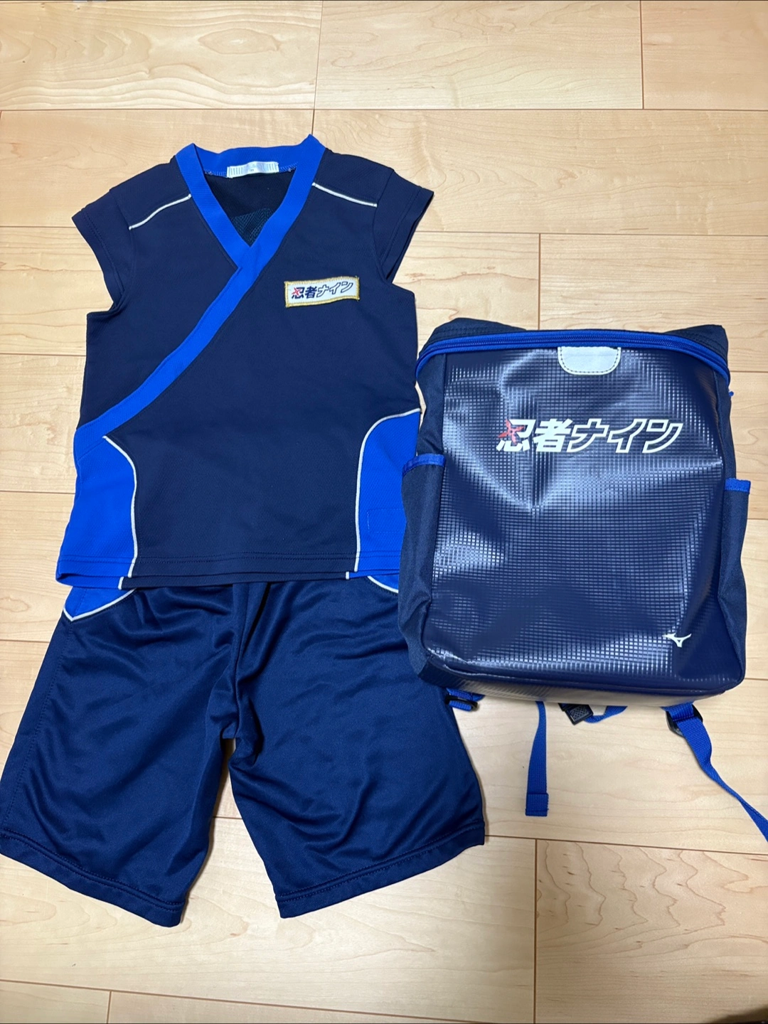 忍者ナインのユニフォーム上下セット+バッグです。 上:130cm 下:120cm バッグ:記名なし ユニフォームはメルカリで中古で購入したものの、1回も着ずにおわりました。 綺麗な状態でまだまだお使い頂けますがネームのところ黒塗りされてあります。 バッグは3ヶ月計12回のみ使用しました。 反射盤の上が切れてるのと、バック表面に傷?あります。 中古品にご理解いただける方のみご購入お願いします。