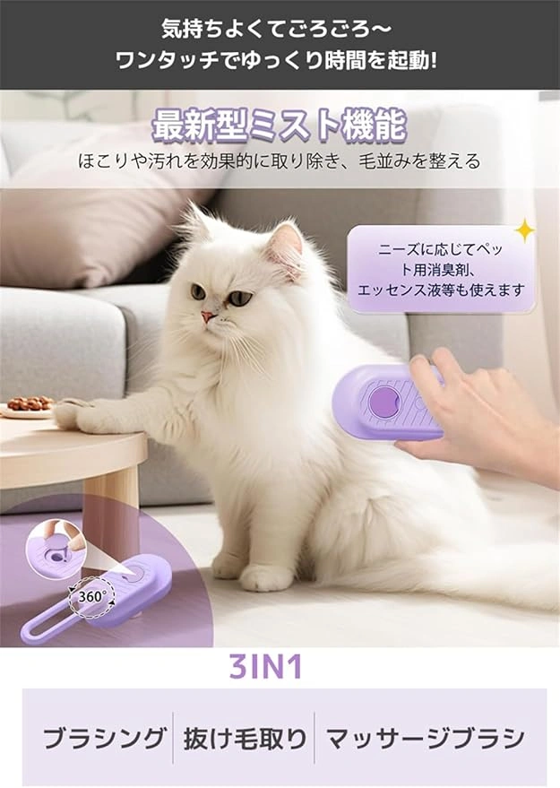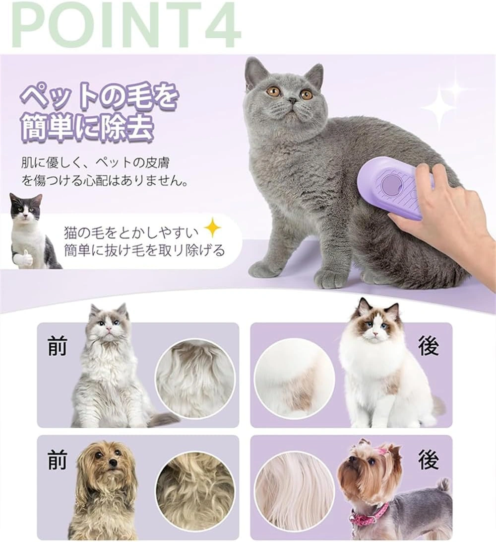 新品未使用です。 *サイズ:ブラシ部分 約 11cm(縦) × 6cm(横) *重さ:約115g 【ペットの衛生】 このペットの抜け毛用ブラシは、抜け毛や汚れを優しく取り除き、毛のもつれを防ぎ、毛皮を健康に保ちます。この効果的で快適なブラシを使用すると、髪のもつれを解決するのがこれまでになく簡単になります。 【肌に優しい快適さ】 当社の猫の脱皮用ブラシは、丸い端のブラシの歯と、グルーミング中にペットの肌を傷つけない独自のデザインを誇っています。 【活性化とリフレッシュ】 当社の多目的クリーニング猫毛ブラシは、ペットのコートを洗浄して活性化するのに最適です。抜け毛や汚れを効果的に除去するだけでなく、心地よいマッサージでリフレッシュして健康的な被毛をもたらします。 【長持ちするパワー】 充電式で長持ちするバッテリーを備えた猫用マッサージコームブラシは、グルーミング中に子猫を落ち着かせる充填穴のデザインが特徴です。 ……………………………………………………………………………… ︎︎︎︎◎検品、現物写真撮影のため 一度開封していますが、未使用品です。 ◎参考として引用画像を掲載しております。 商品の状態、色味、内容物等は実物写真を ご確認ください。