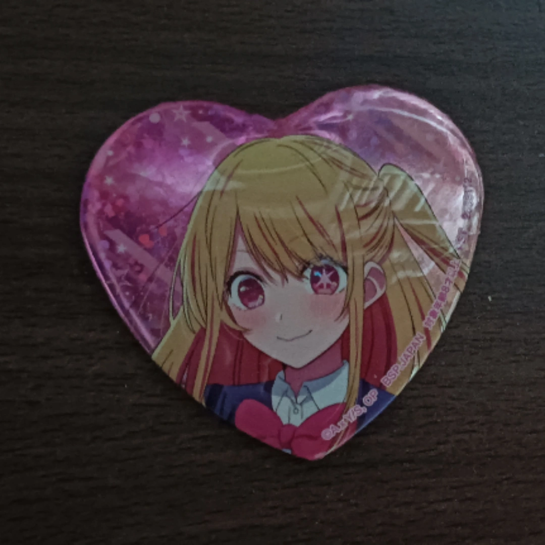 推しの子のハート型缶バッジです。 クレーンゲームで取ったものです。 小キズがあります。