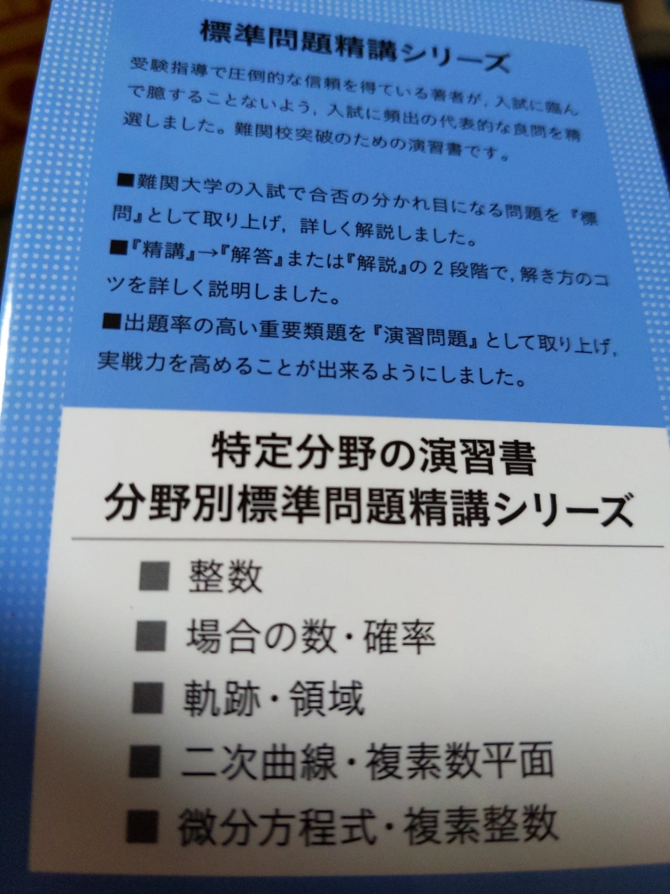 難関私立大,国公立二次試験の数学を受験する人のための問題集 受け渡し場所は駅の他、近隣図書館などでも対応できます。購入後子どもが進路を文系コースに進んだのでほとんど使用した形跡はありませんが、中古品であることをご理解の上お取引をお願いします