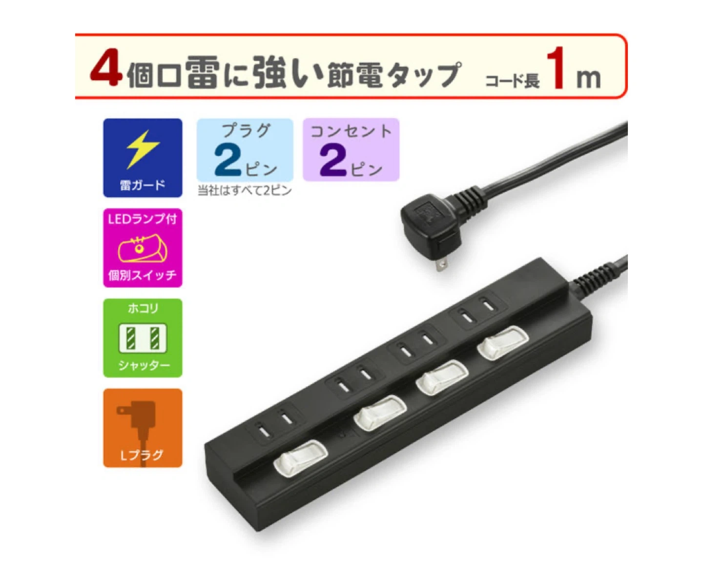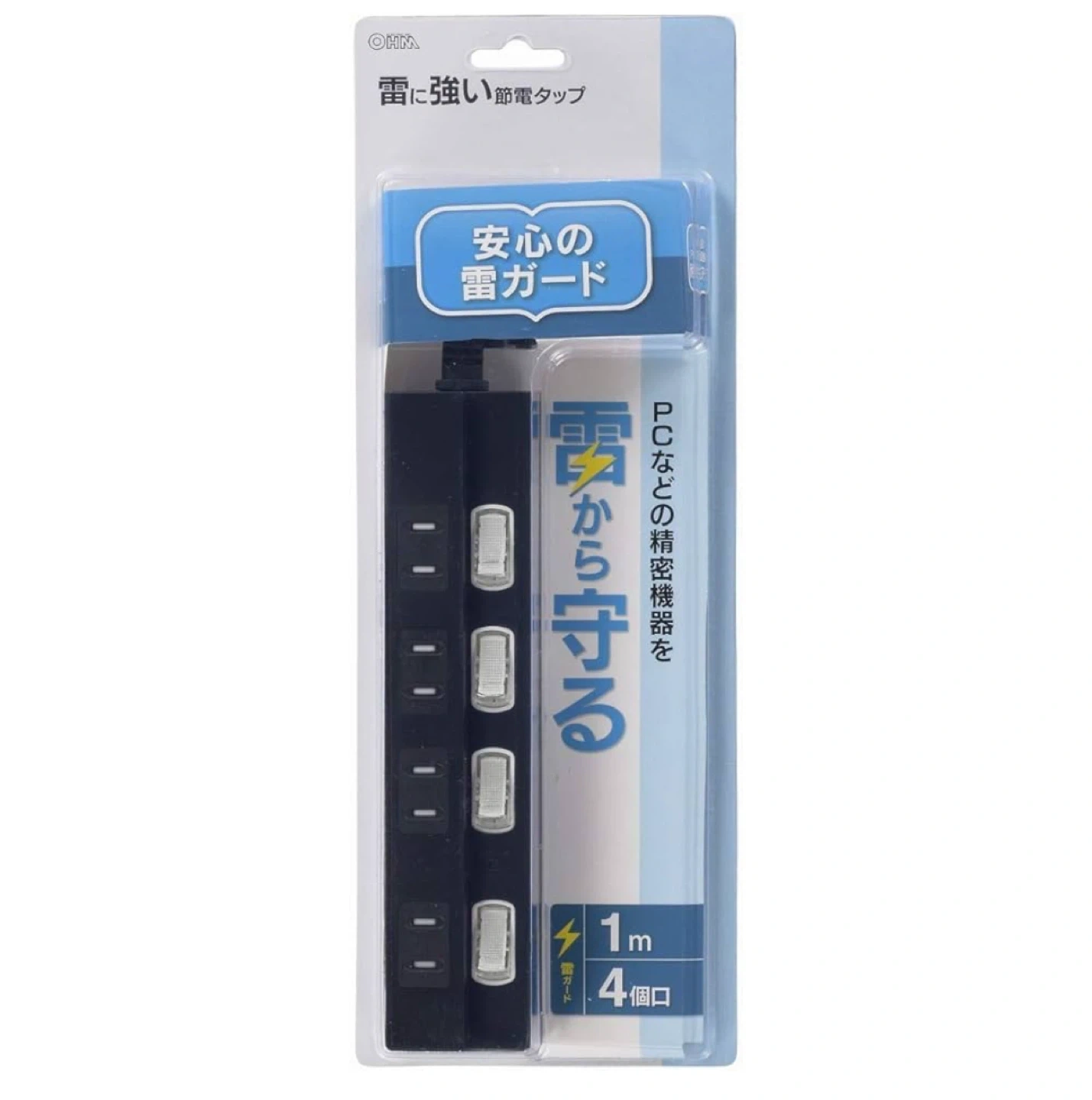 新品未使用 オーム電機 雷に強い節電タップ 4個口 1m 黒_ HS-TPK41PBT-K 1個