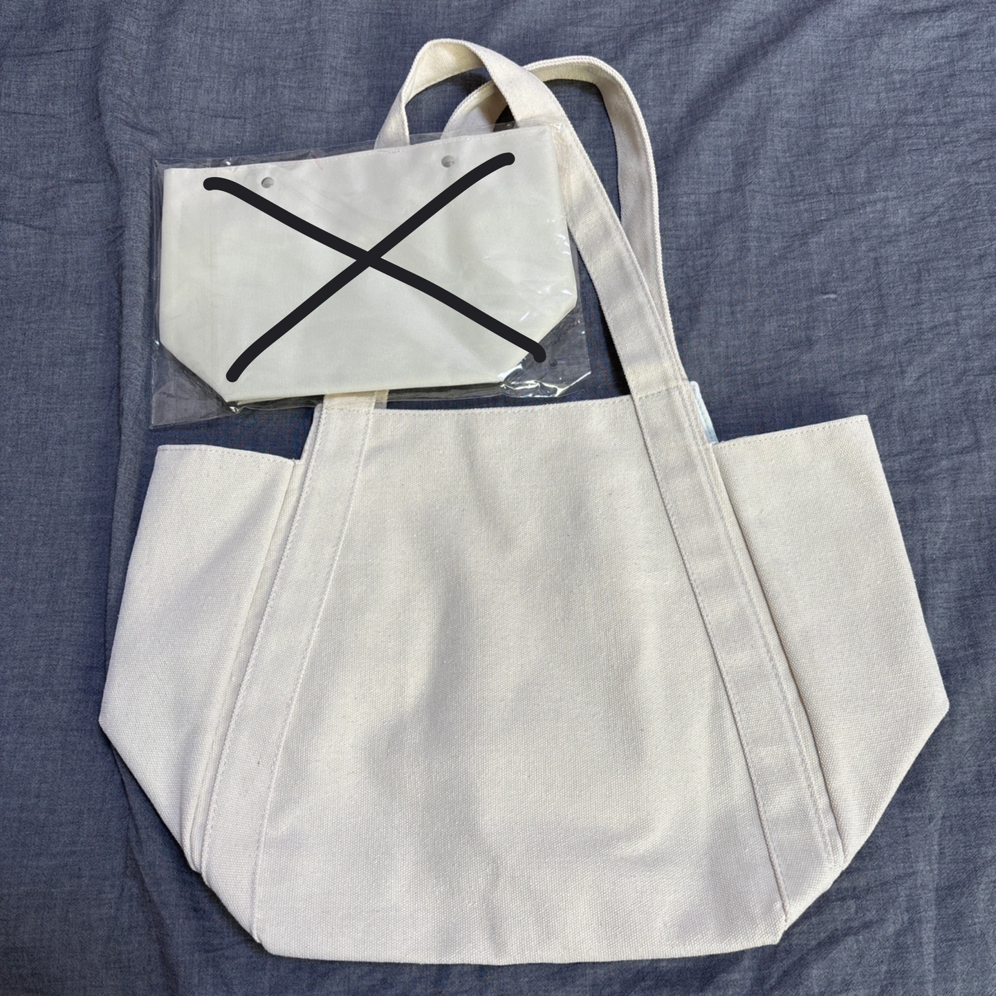 2025年の福袋に入っていた物になります。 トートバッグのみになります。 未使用品です。かなりたくさん入りそうです。 ▪️材質 ・表地:綿70%、ポリエステル30% ・裏地:ポリエステル100% ▪️本体寸法(畳んだ状態) ・横:約45cm/縦:約30cm/マチ:約14cm /ハンドル:約53cm ▪️内ポケット寸法 ・横:約18cm/縦:約14cm よろしくお願いいたします。