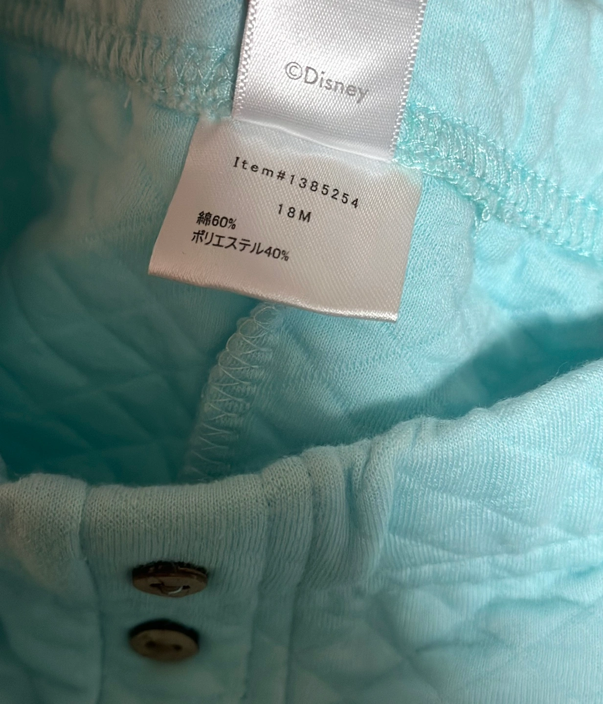 ★新品未使用 ★タグ付き ★2点セット(上下セット) . Disney baby ディズニーベビー パーカー&パンツの2点セット とってもかわいいミッキー&ドナルド柄の 耳付きパーカーとパンツのセットです 膝のワッペン?は、ミッキー型 パーカー、パンツともにボタンは木製で とてもオシャレです ズボンの方は飾りボタンです(^^) . 【サイズ】 18mサイズ ( 日本サイズ 90cm相当のようです ) パーカー 肩幅:24cm/身幅:26cm/ 着丈:32cm/袖丈:27cm パンツ ウエスト平置き:24cm/総丈:45cm .  【素材】 綿60%:ポリエステル40% . 元々はロンパースとTシャツのついた 4点セットでした。 ロンパースとTシャツは半袖だったため 夏に着用しましたが、 こちら長袖のフード付きパーカーと 長ズボンはサイズアウトしてしまいましたため 新品未使用(タグ付き)のまま保管してありました。 是非活用してくださる方に お譲りさせていただけましたら嬉しいです。 . 【状態】 新品未使用自宅保管品 商品はタグ付きの未使用品となりますため、 記名や汚れ、破損などはありません。 着用前にご家庭でお洗濯などお願いいたします。 . 【 お取引について 】 引き取りは神奈川県横浜市鶴見区 ローソン市場大和町店前としています。 基本的には平日19時以降、土日祝午前中ですと助かります。   土日祝は午後に予定を組みたいため、 午前中としていますが 前もってのお約束でございましたら、 スケジュールの調整をいたします。 小さな子供がおりますため 健診や予防接種の予約等でどうしても難しい場合には 申し訳ございません。 よろしくお願いいたします。 問い合わせは24時間大丈夫です。(音、非通知のため) すぐにお返事できない場合もありますが、 必ずお返事いたします。 深夜の授乳(0歳児)などもありますため、 深夜帯、早朝にお返事をすることもございます。 あらかじめご了承くださいませ。 #Disney #ディズニー #ディズニーベビー #子供服 #ベビー服 #フードパーカー #アウター #ルームウェア #パーカー #キッズパーカー #上下セット #セットアップ #ミッキー #ドナルド #ミッキーマウス #ドナルドダック