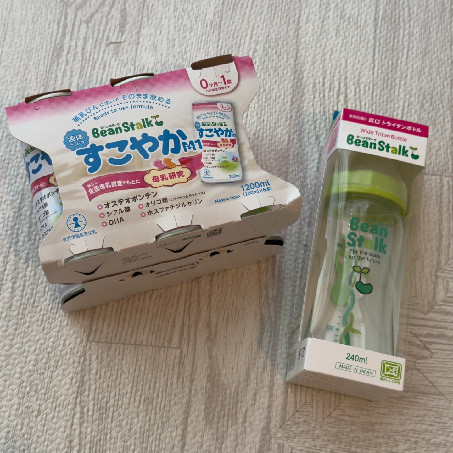 ビーンスタークの液体ミルクと哺乳瓶です。 哺乳瓶は新品未開封です。 液体ミルクは1本使用してしまったため 5本となります。 【情報】 ブランド:ビーンスターク 商品:液体ミルク、哺乳瓶 液体ミルク内容量:1000ml(200ml×5本) 哺乳瓶容量:240ml 【状態】 哺乳瓶:未使用品 液体ミルクの使用期限:2026年4月14日 受け渡し場所 📍 葛西警察署 宇喜田駐在所 〒134-0082 東京都江戸川区宇喜田町1035 (船堀駅徒歩7分)