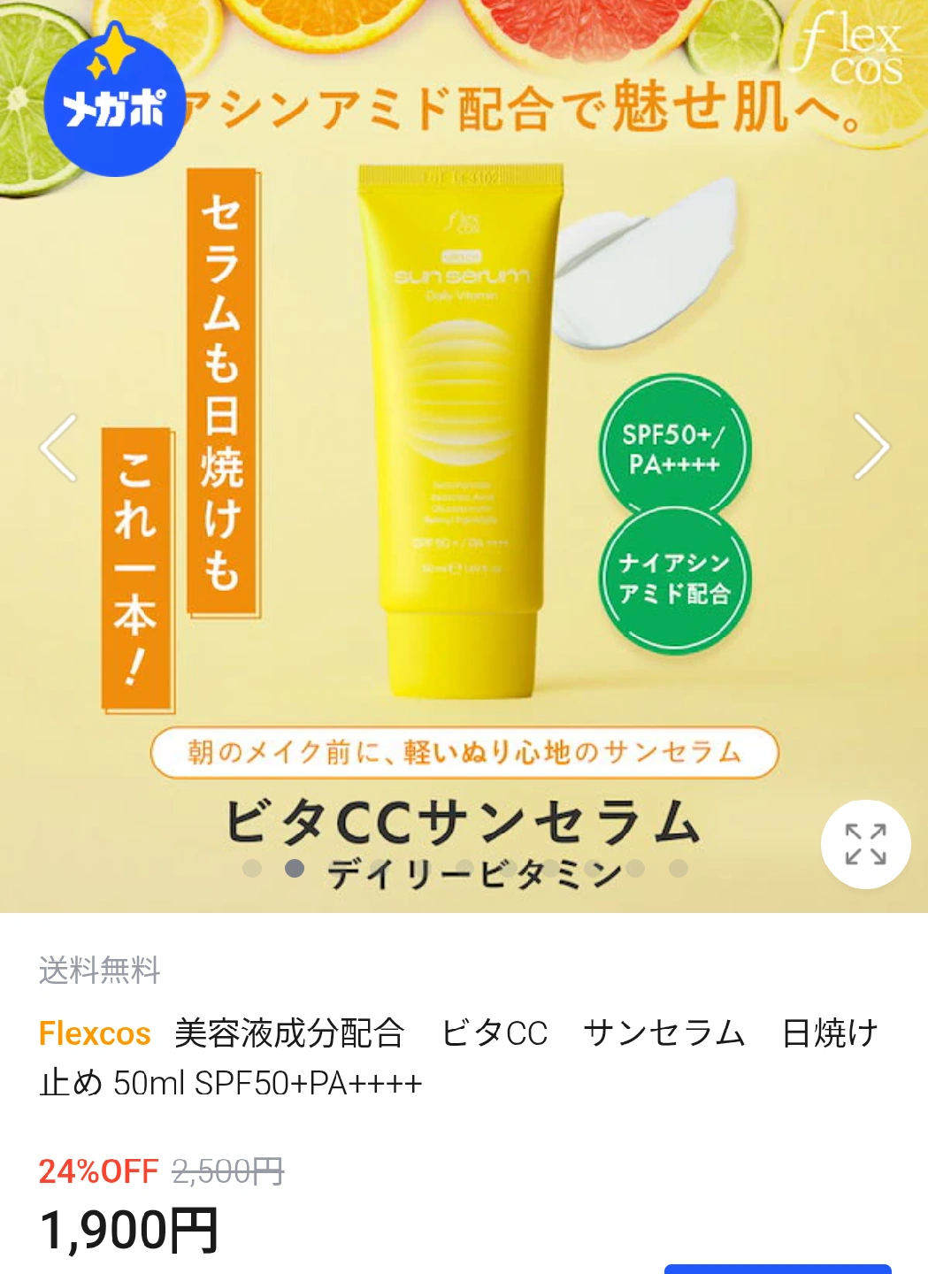 新品 日焼け止め flexcos サンセラム SPF50 ビタミン ナイアシンアミド