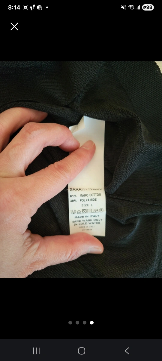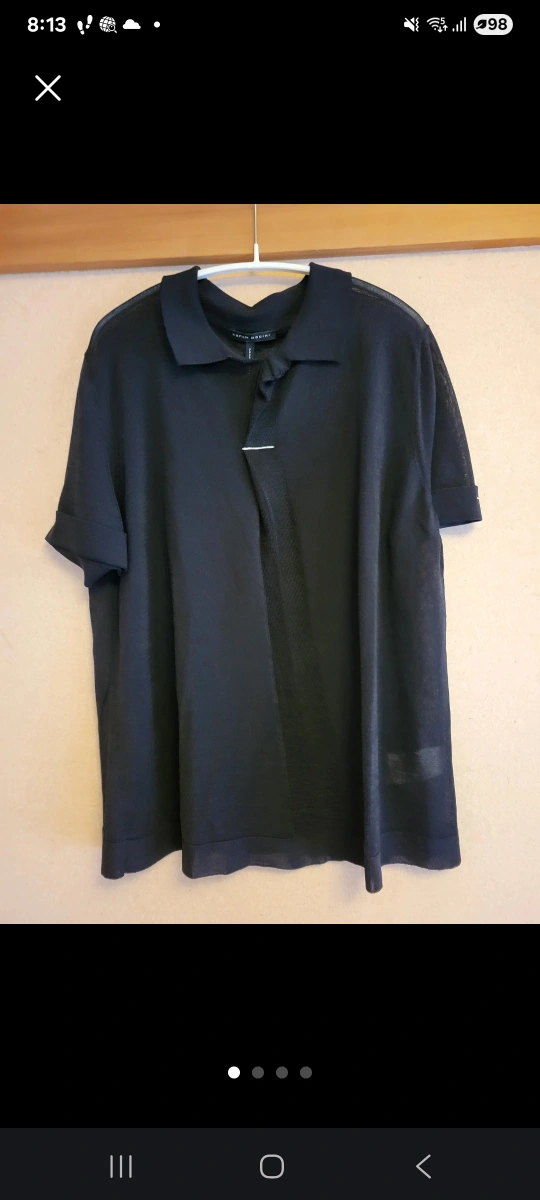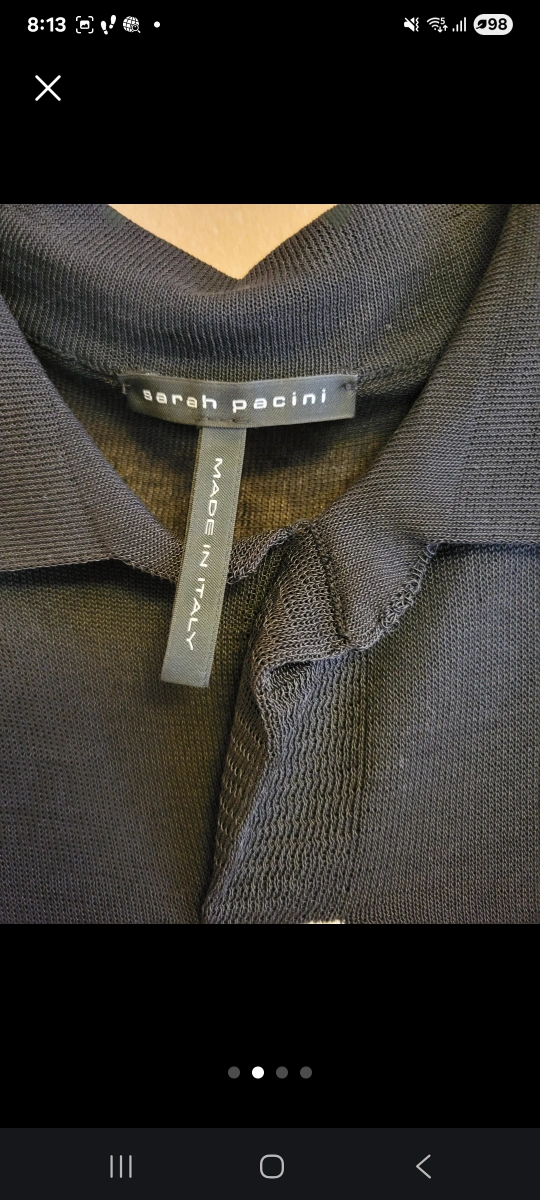 ベルギー発ブランド、高島屋にショップのあるサラパチーニのポロニット、色はブラックです。 透け感のある生地なので、黒でも重くなりません。 少し裾が広がったAラインのデザインなのでスポーティーになりすぎずおしゃれに着られます。 ・素材:綿61%、ナイロン39% ・サイズ:1 ・イタリア製 新品未使用品ですが、自宅で保管していたものとなりますことご了承ください