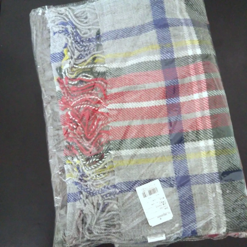 新大久保or大久保~新宿でのお渡しです(^-^) 【商品状態】未開封※自宅保管になります 【購入価格】約2376円 【販売価格】約37%OFF1500円 【サ イ ズ】W75cm×H193cm フリンジ/7cm 【素 材】アクリル100% 【製 造 国】中国(縫製) 【ブランド】三京商会 【特 徴】大判でアレンジ自由自在 ユニセックスデザイン 男女兼用 【オススメ】エアコン冷え対策にも