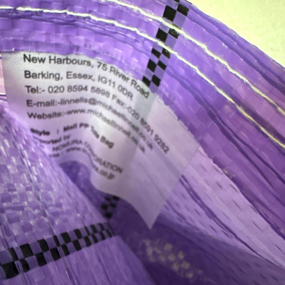 ロゴがオシャレなプラスティックの トートバッグです。 ※1枚目の写真で、下側に折り込まれている部分は底のマチになります。(袋状に開いていませんので、折り目は新品の購入時のままになっています) ★濡れた物も入れられるので、洗濯物をランドリーに持って行くのにも◎ ★海辺では、レジャーシートも兼ねられて大活躍! ★洗えるので汚れも気 にせず使えます! ★底のマチもあって、容量たっぷり! ★かなりの重量にも耐えられるので、 お買物にも! - カラー: パープル - 素材: プラスティック - ロゴ: LYNNELL'S MAIROOM SUPPLIES - 機能: 折りたたみ可能 - サイズ(本体):約タテ42cm×ヨコ59cm×マチ16cm - 持ち手のタテ:約20cm(腕を通して肩に掛けられます) 他のお品物とおまとめの場合、 お値引き致します。 受け渡しは10/8〜14迄 いなげや関町店入口宝くじ売り場辺り、上石神井駅、タイミングにより吉祥寺駅も可能な場合があります 他にも、ブルーとグリーン出品中