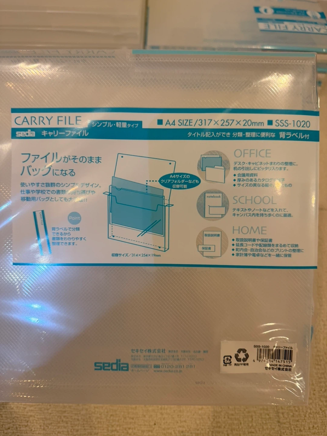 セキセイのキャリーファイルです お仕事、ご家族の書類整理に使えます。 購入しすぎてしまいました。 お安く譲ります。 【情報】 ブランド:セキセイ 商品名:キャリーファイル サイズ:A4 型番:SSS-1020 サイズ:317×257×20mm 【状態】 4つ未使用品です 7つ美品です 中古品が含まれることにご了承ください