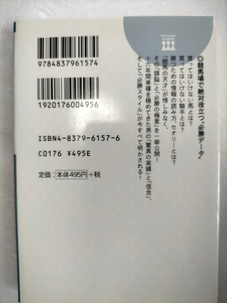 最強の競馬術 絶対勝てる馬券はこう買え! 里中李生 王様文庫 定価: 495 円+税 自宅保管のため細かい傷や折れ・汚れ等がございます。