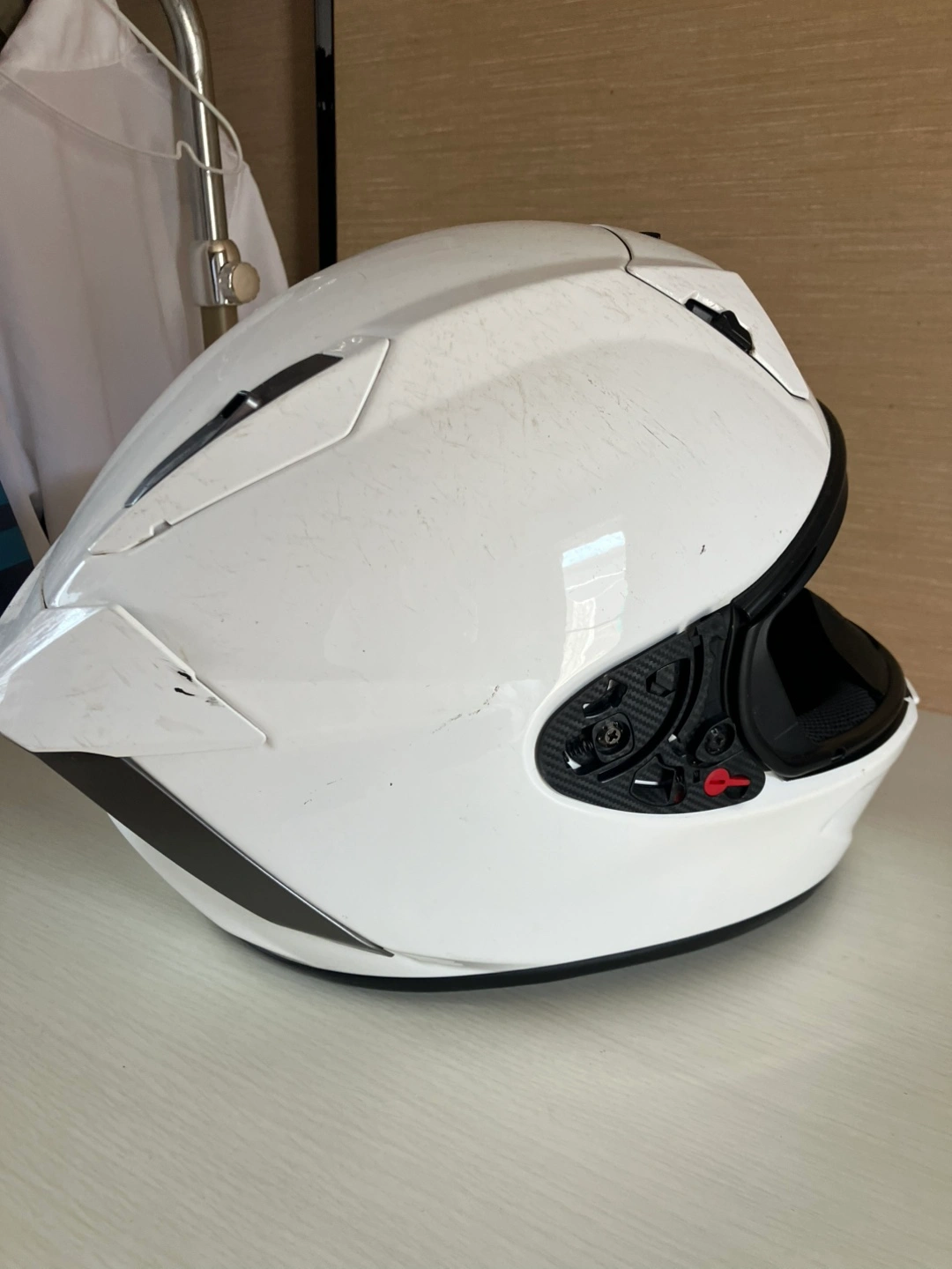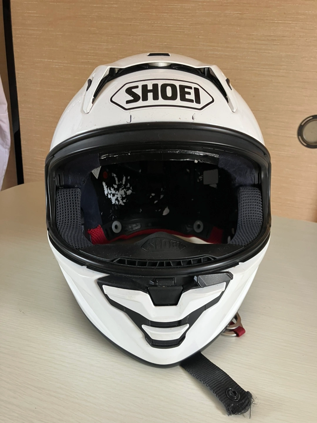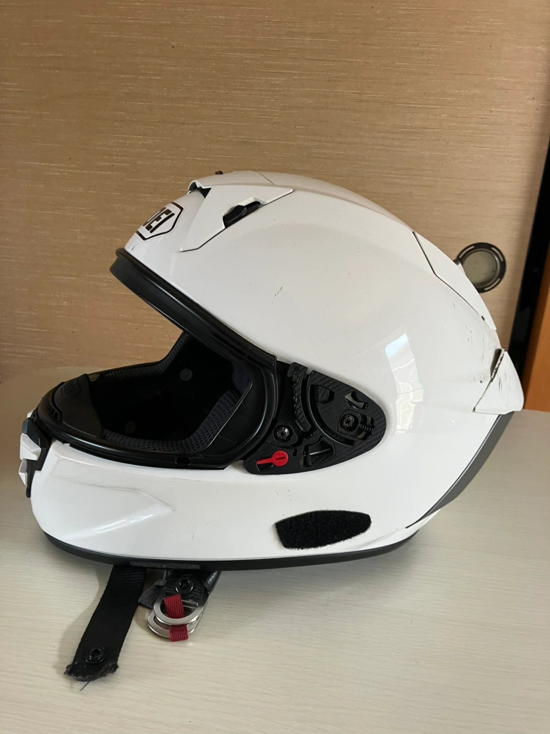 ・ブランド:SHOEI ・モデル:X-Fifteen ・カラー:ホワイト ・ヘルメット ・使用感あり ・キズ、スレあり インナーパッド、チークパッド、シールドがありません。 使っていた人の頭周りが58or 59cm位です。 JIS規格で2種ヘルメットなので、レース対応となっています。 製造年も2023年1月と比較的新しく、帽体そのものに強い衝撃は与えられていないので、パット、シールドをセットすれば使えると思います。 自宅まで取りに来てくださる方限定でお願いいたします。 事前にご連絡いただければ、曜日を問わず11時から18時位までの間でお引き渡しが可能です。