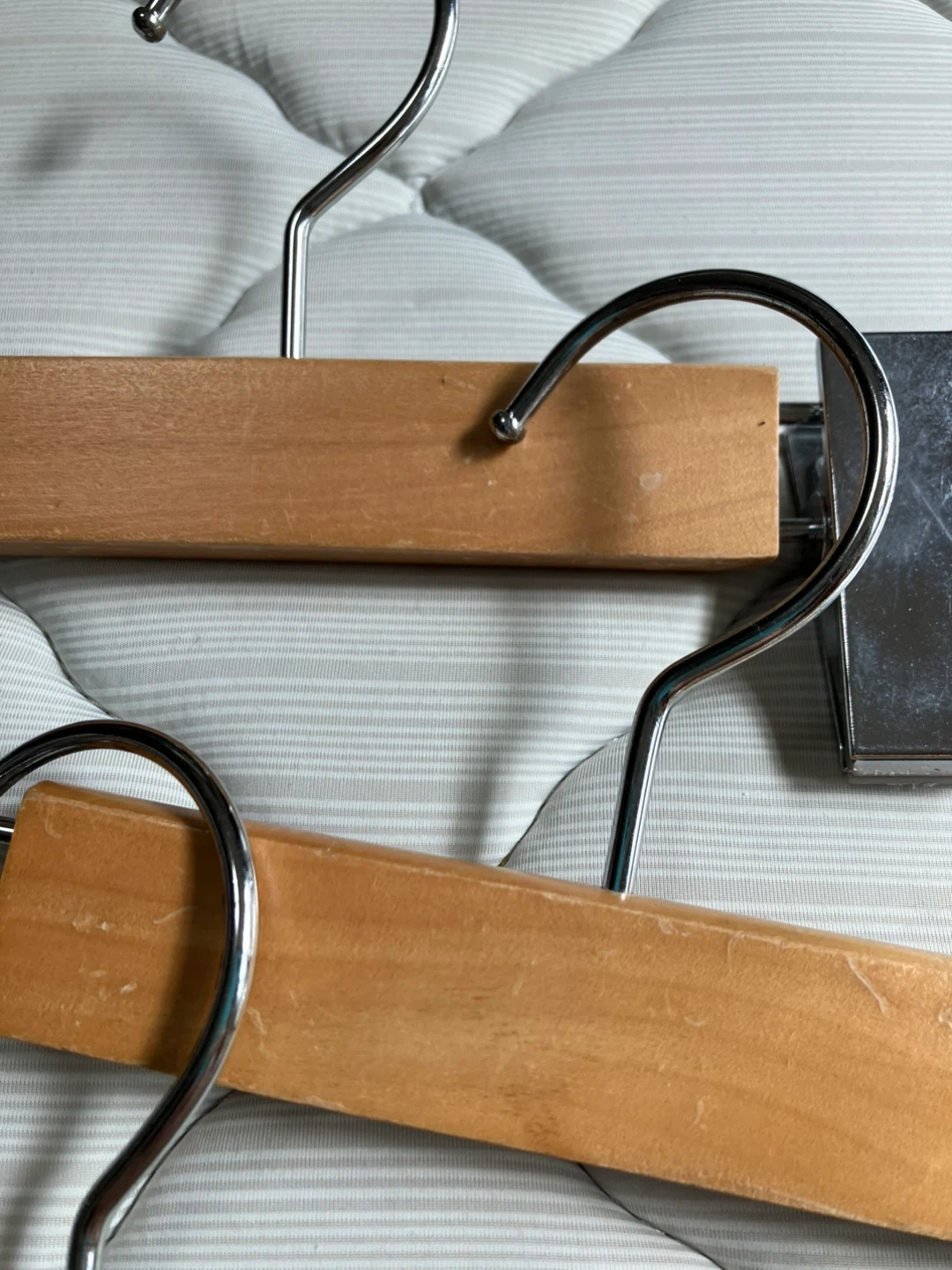 木製ハンガー3本セットです ・木製 ・クリップ付き ・使用感あり 中古品であることご了承ください