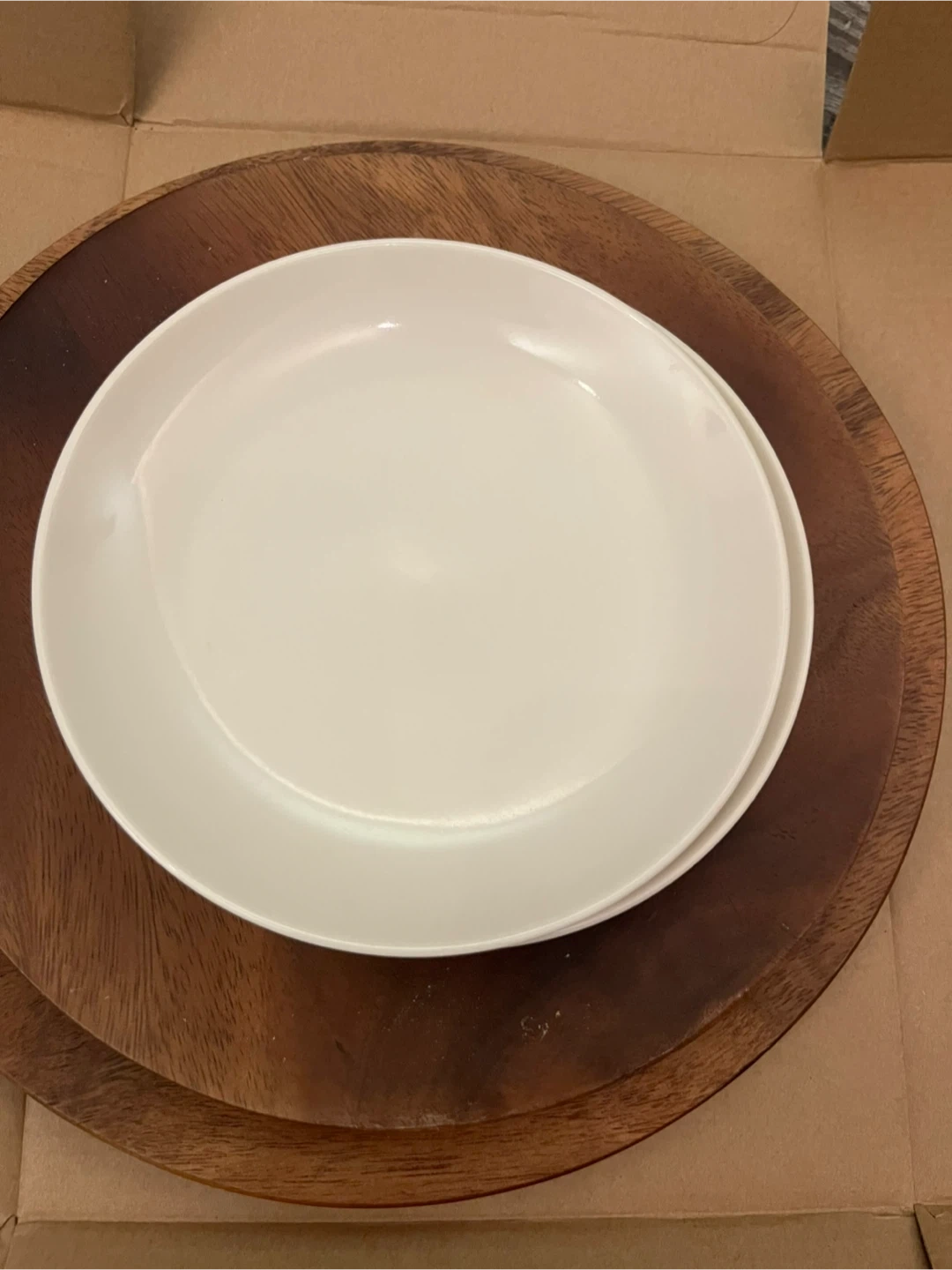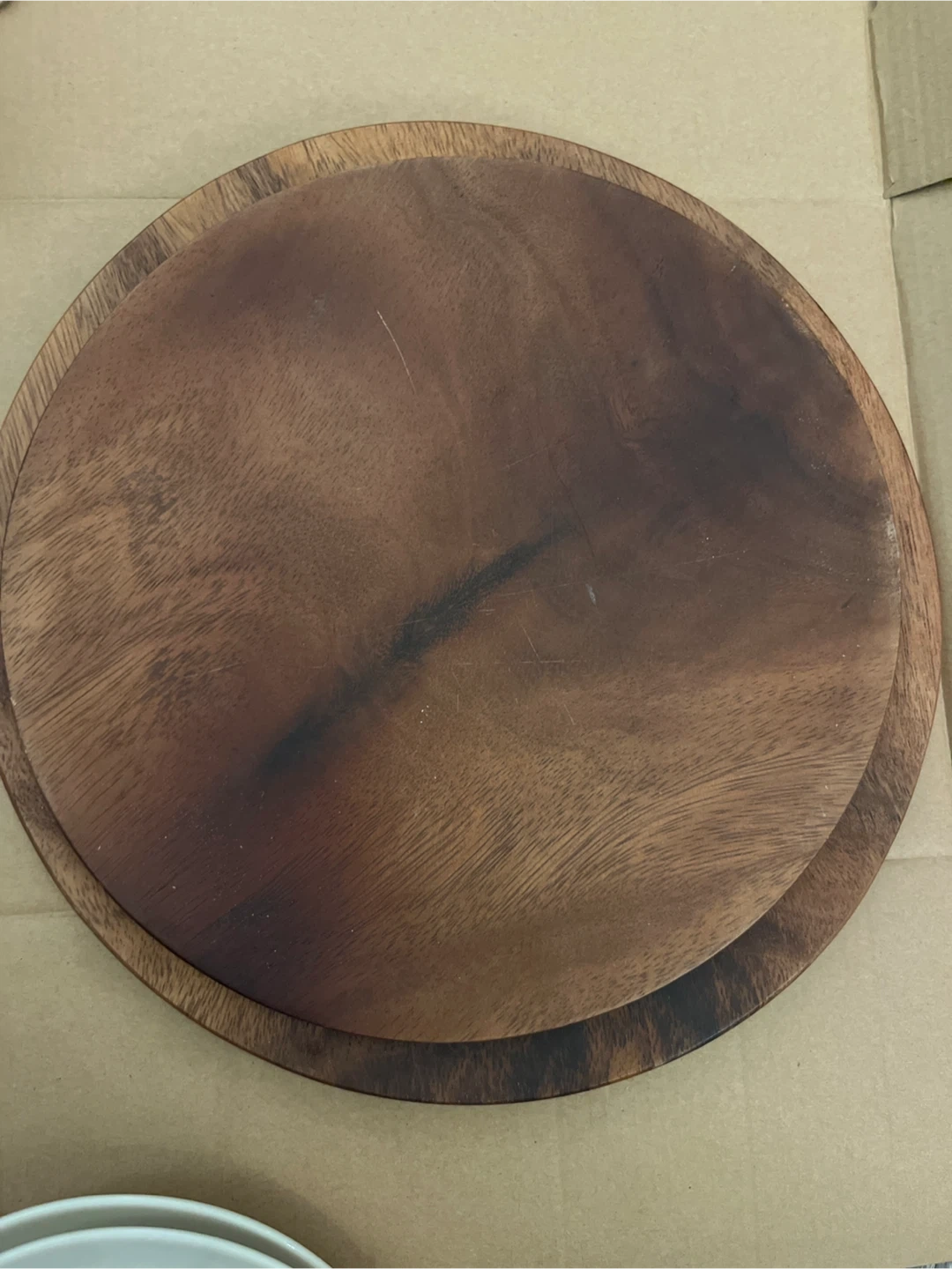 木製のプレート2枚セットです。 サイズは混同。 木製プレートは汚れではなく 白 約12cm 木製①20cm ②22cm 他 ・素材:木製 ・色:ブラウン ・状態:使用少なめ 中古品であることご了承ください