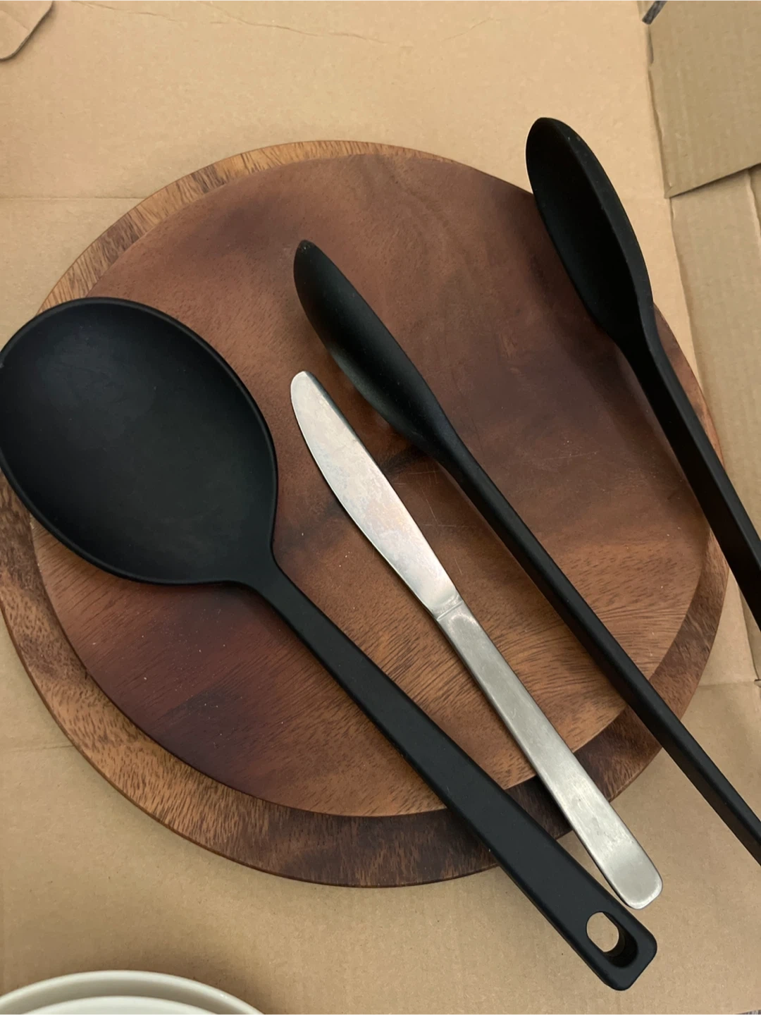 木製プレート 陶器皿2枚セット トング ナイフ 大スプーン