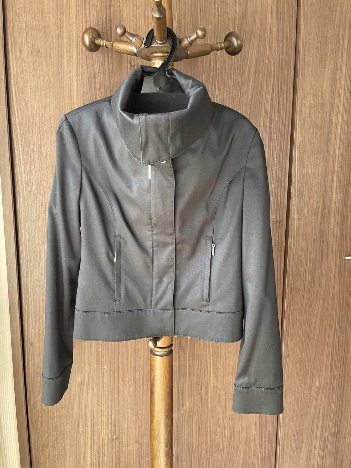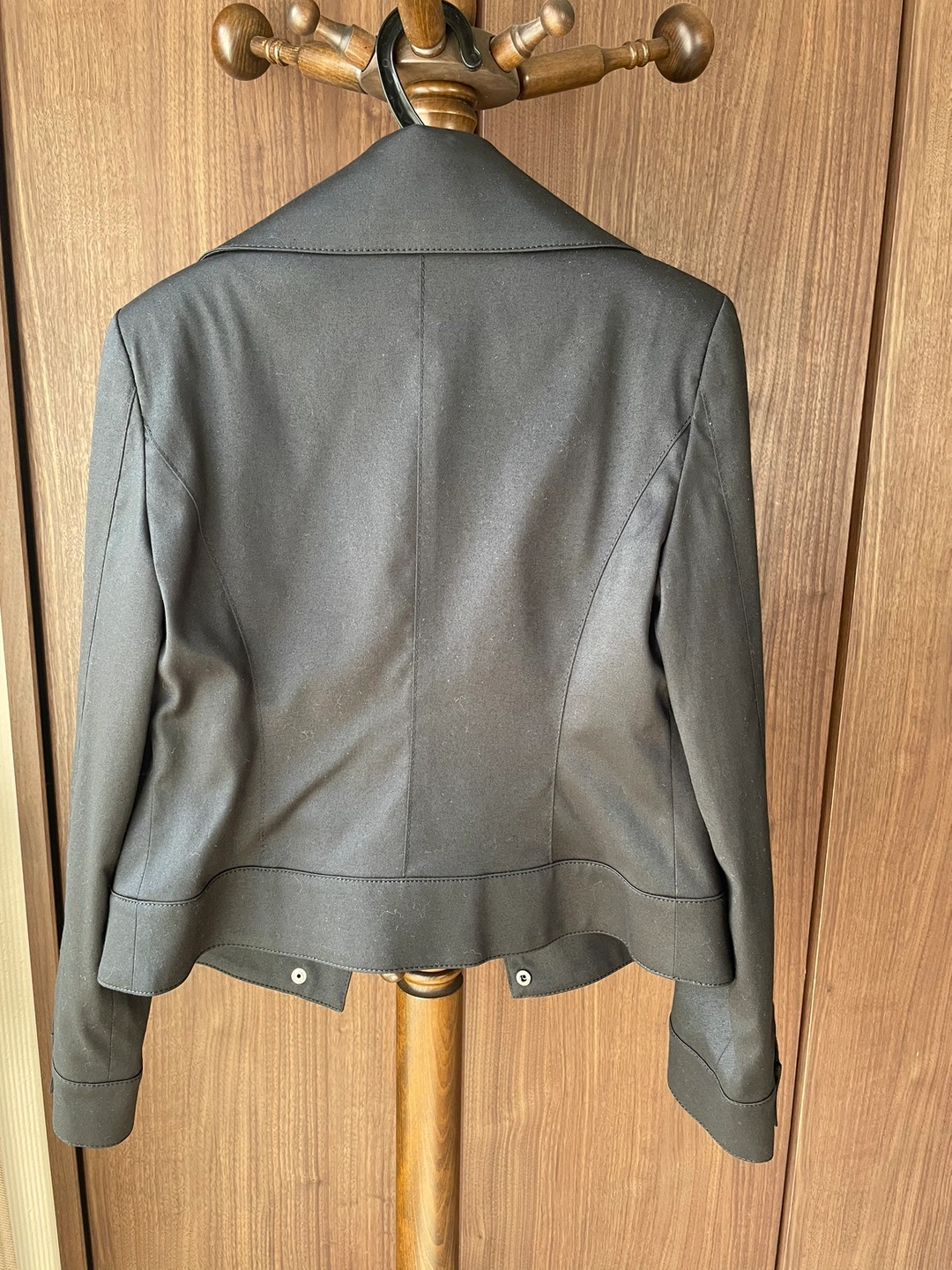 おしゃれ好きな親族から昨年暮れにもらいました。素敵なラインなのですが、好みに合わないので出品することにしました。 色違いでシャンパンゴールドもあります。 タグは外してしまいましたが、未使用です。 サイズ38 着丈約48cm 肩幅約38cm (素人採寸のため誤差はご了承ください) ツーウェイタイプの襟ぐりで、ウェストラインが綺麗です。 今の時期は少し肌寒い日などにちょうど良い感じです。