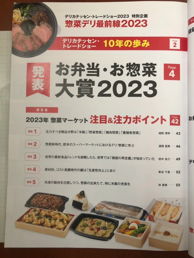 あたたかさお弁当、お惣菜大賞2023 惣菜デリ最前線 112ページ 非売品 巻き寿司 弁当 惣菜 麺 丼 おにぎり 寿司 パン スイーツ 各国料理 容器 各部門での賞が掲載されてます 未読に近いので綺麗です 宜しくお願います