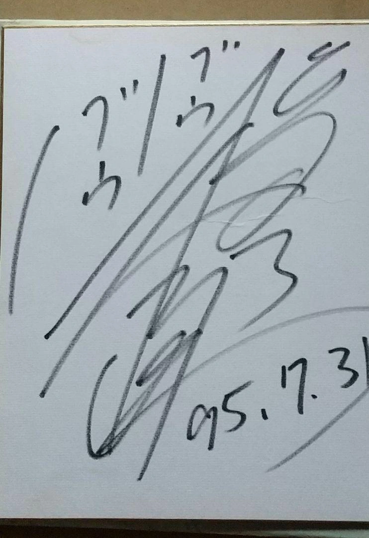 95年7月31日の日付入りです。 山口県の放送局、KRYラジオの「日曜治美ランド」という番組で頂いたものです。 当時番組内で複数の賞品が有り、他の賞品が欲しくて応募したのですがゲストで来られていた松村さんの色紙が当たり複雑な気分になったものです。実家の整理で出てきましたので興味のある方にお譲りします。現在のサインとは異なるようなので、最近ファンになられた方如何でしょうか? 色紙中央右側に、しわというか折れ跡?が有ります。 古いものですので、完品をお求めの方はご遠慮ください。 ご希望の方はお気軽にご連絡ください。
