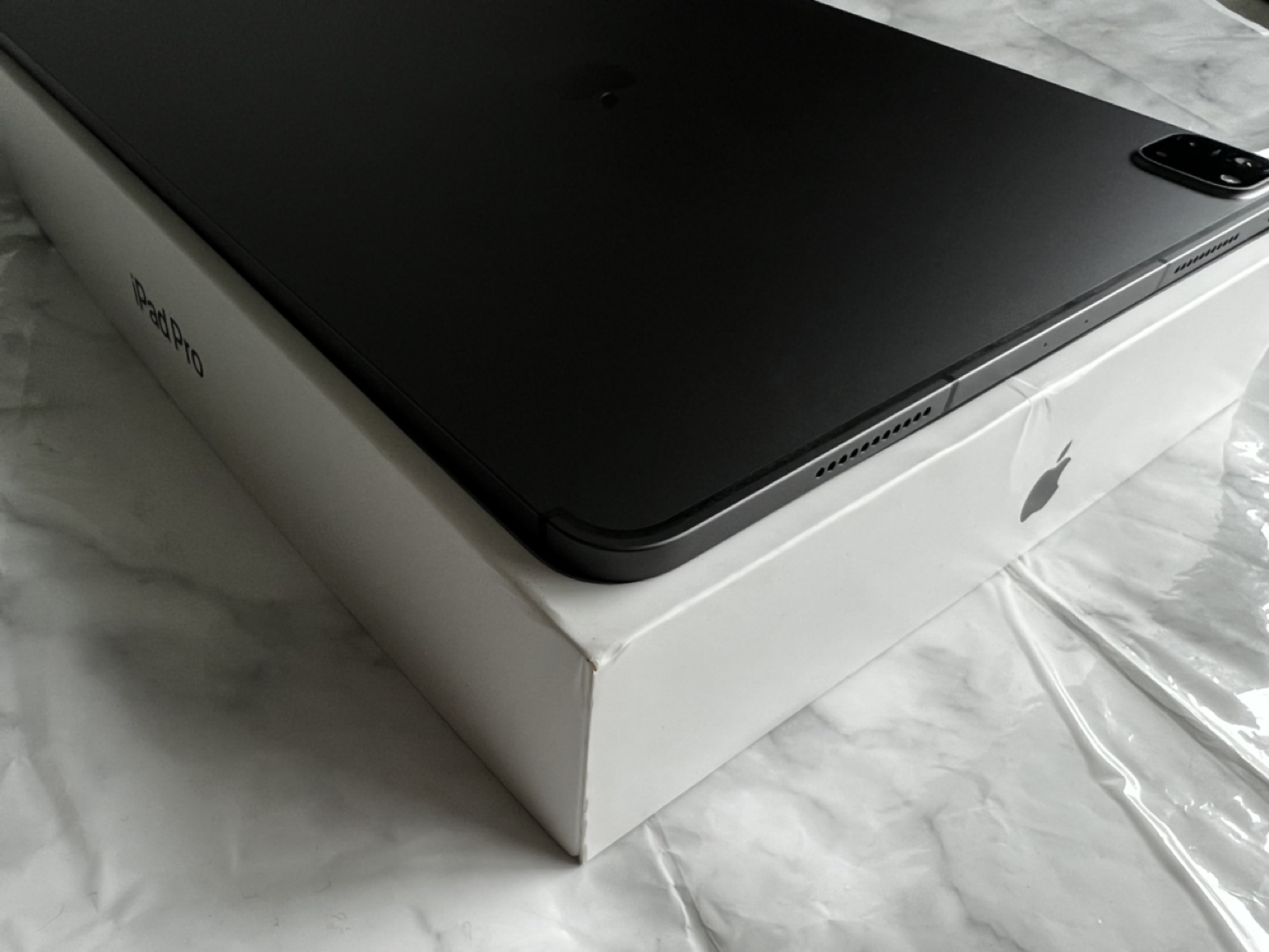 12.9インチiPad Pro (第5世代)Wi-Fi + Cellular 128GB - スペースグレイ 購入価格 181,800円(税込) 保証あり 2025/06/26まで(英語なのは気になさらないでください、日本のショップで対応いただけます) 必要かと思い新品で購入後、開封しておりますが ほぼ使用せず、購入時の箱に入れて保管しておりました。 バッテリーを切らしたこともなく、状態も良好です。 【商品状態】 ほぼ未使用の、極美品になります。 外箱、包装フィルムに汚れなどはあると思いますので ご理解の上、ご購入ください。 ネットワーク利用状況 ◯ 支払い完了済みです、ご安心してご購入いただけたらと思います。 【付属品】 本体 化粧箱 説明書 購入時の包装フィルム (充電器とコードは付属いたしません。) 12.9インチiPad Pro (第5世代)Wi-Fi + Cellular 128GB - スペースグレー