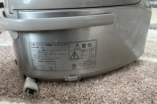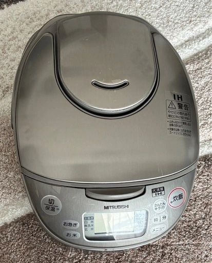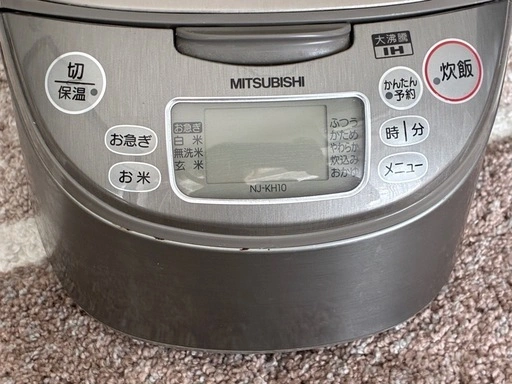 新しい炊飯器を購入したため、お譲りします。 ブランド:MITSUBISHI モデル:NJ-KH10 容量:最大5合 IH加熱 内釜にスレが多くみられますが、お米を炊く際に影響はないかと思います。お米の炊き上がりにこだわりがある方はご遠慮ください。 全体的に大きな傷等はありませんが、素人検品、中古品であることをご承知おきください。 自宅まで取りに来ていただける方にお譲りいたします。