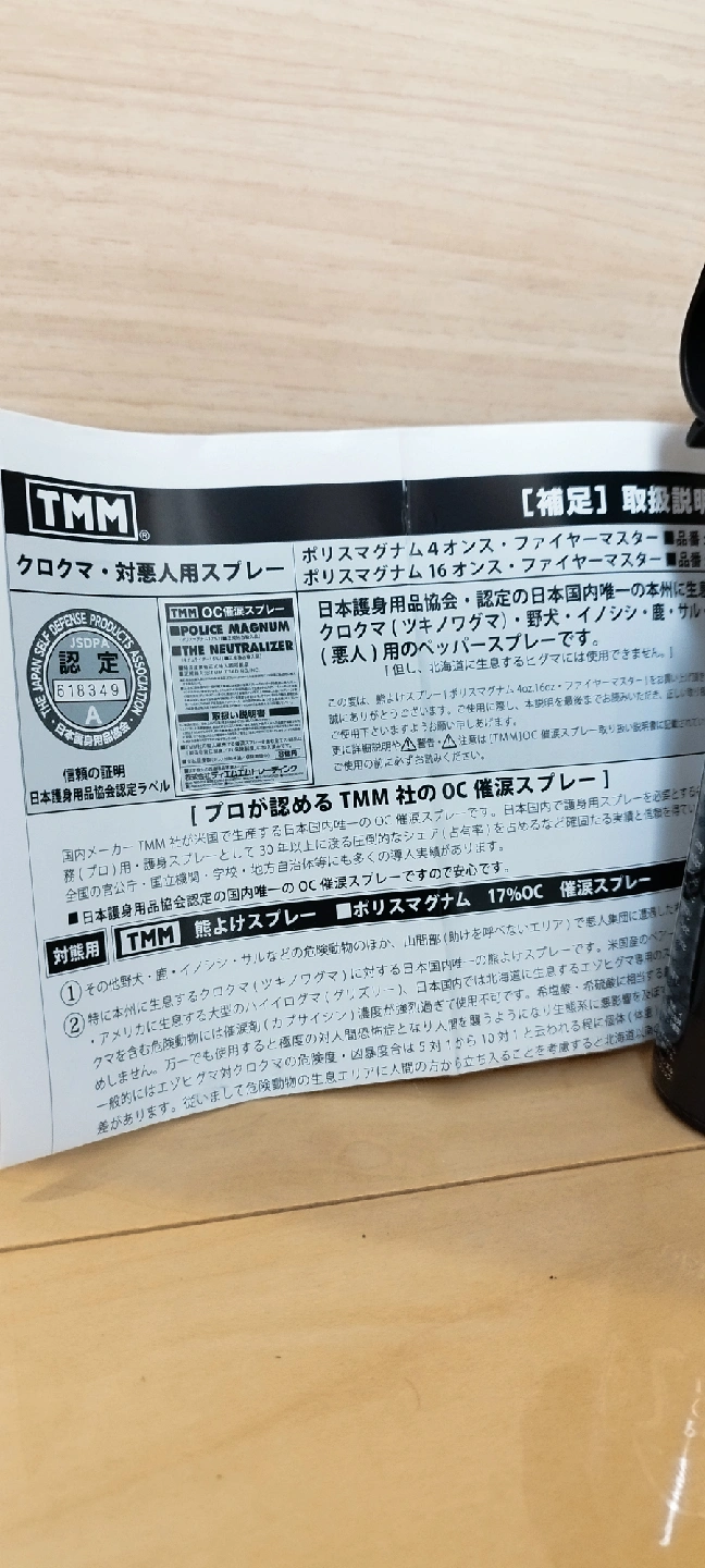 あたたかさTMMのペッパースプレーです。 【情報】 ブランド:TMM 商品名:POLICE MAGNUM OC-17 種類:ペッパースプレー 【状態】 新品、未使用 【付属品】 箱、説明書