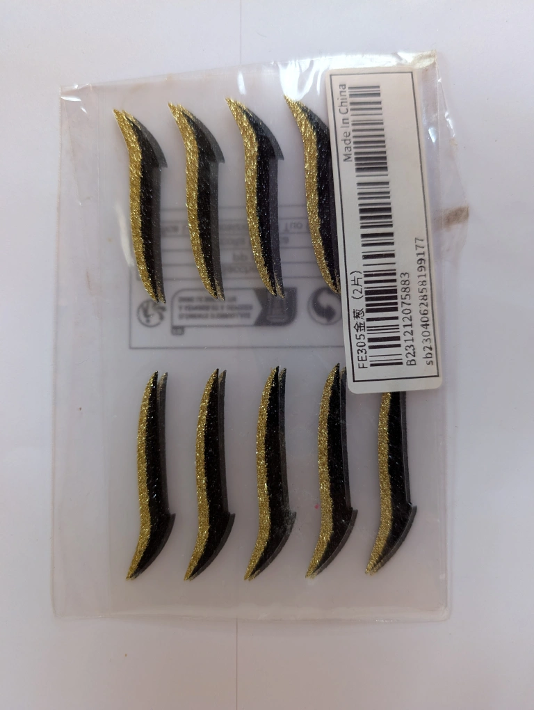 目の上に貼る黒と金のデコレーションパーツ10個セットです ・色:黒、金 ・数量:10個 ・状態:未使用品 新品同様です