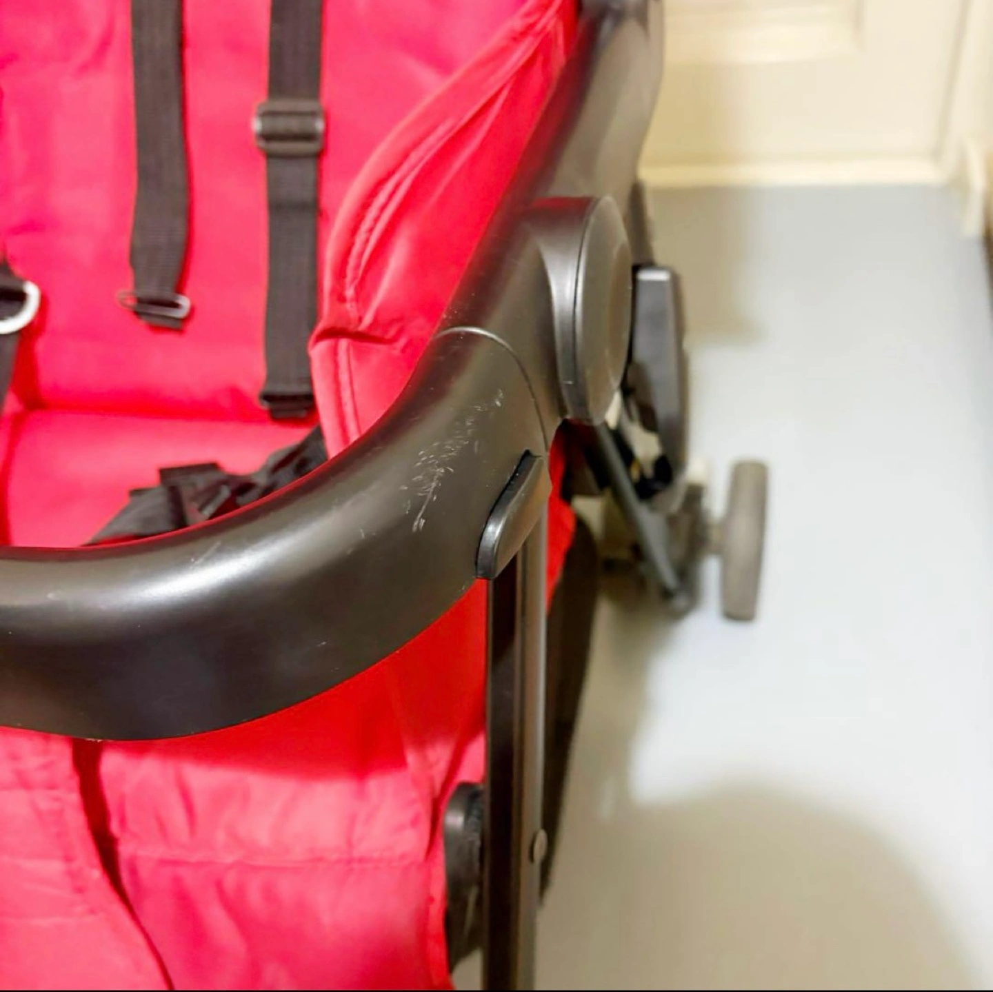 使わなくなったので出品します。 特に汚れ等気になるところ、シミはありませんが3年は使っているのでタイヤや、持ち手、足置き場など少し傷があります。 ★背中の部分の角度は後ろの紐の長さで調節出来るのでお昼寝もしやすいです!! 背面の生地に穴が空いているところはベルトの高さ調整が出来るところです!写真13.14。 ベルトの高さが調節できるので年齢幅も広くお使いいただけます。 15キロまでお使いいただけます。 写真4の子供の取手部分は横にボタンがあり左右から開閉できます。ある程度大きくなったら自分で開けて乗れるようになります! 受け取り場所は要相談で変更も可能です。 ベビーカーなので押して移動させていただきます。