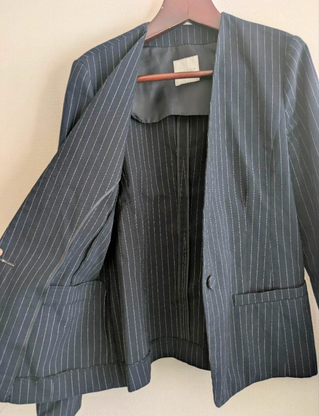 【美品】opacue.clip ノーカラージャケット ネイビー ストライプ S お色味はネイビーブラック(ちょうど両方の中間のような色です)なので、お手持ちのブラウス、パンツ、スカートと合わせやすいと思います。 ノーカラーでスタイリッシュなデザインなので、フォーマル、仕事着、普段着まで幅広くお使い頂けます。 OPAQUE.CLIP TOKYO オペークドットクリップ オピークドットクリップ ノーカラー ジャケット ストライプ フォーマル ネイビー サイズ 36号 S 肩幅/身幅/袖丈/着丈 肩幅...34cm 身幅...41cm 袖丈...55cm 着丈...55cm 数回着用し、クリーニングに出したまま使用しておりませんでした。 卒業式、入学式、面接にも使えます。 以下、公式サイトより 【デザイン】顔周りをすっきりと見せ、シャープな印象のVラインカラーレスジャケット。パンツともスカートとも好相性な、使い回しやすい丈感です。1枚あると重宝するベーシックデザインも魅力です。 【生地感】さらりとした手触りのシーズンレスでお使いいただけるドビー生地を使用しています。 【参考】 パールやコサージュ、スカートやパンツに合わせて 卒業式 卒園式 入学式 入園式 謝恩会 七五三 フォーマル ママスーツ にしても◎ 【以下のブランドお好きな方にも…】 ナチュラルビューティーベーシック アローズ ビームス ナノユニバース 23区 ユニクロ untitled index オペークドットクリップ 洋服全般は実物を見てから決めていただいても構いません。お気軽にメッセージくださいませ✨️