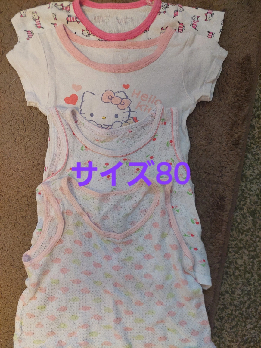 あたたかさ💕女の子用肌着✨ 半袖とタンクトップ4点セット サイズ80 状態 汚れはないみたいですが 使用感があります。 神経質な方はご遠慮ください。 中古品なのでご理解お願いいたします。 サイズアウトしたので出品しました。 自宅保管してます。 受渡し後のクレームはご遠慮ください。 支払いは現金のみでお願いいたします。 申し訳ないですが夜は受渡しできません。 受け渡し場所は白幡池公園、白楽駅、大口公園、大口駅西口、仲手原のセブンイレブンでも可能です。 よろしくお願いいたします。