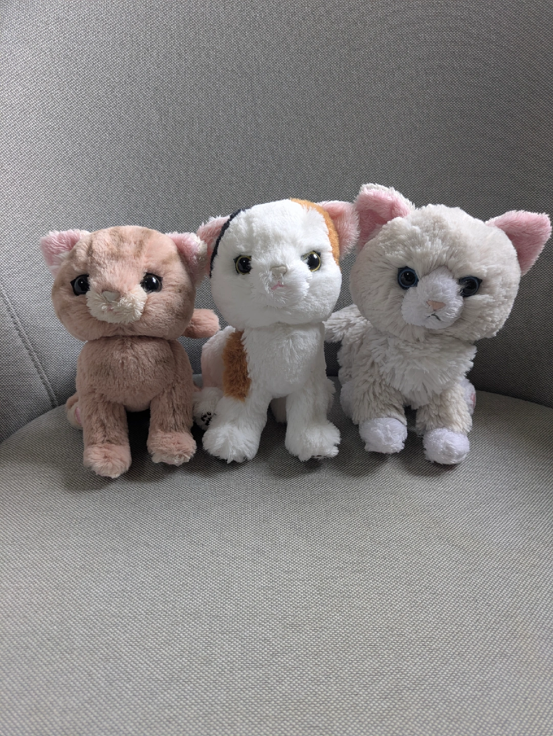 SUNLEMON サンレモン ぬいぐるみ キトン kitten ネコ 猫 子猫 アメリカンショートヘア ブラウン 三毛猫 ミケ ラグドール 肉球付き サンレモンの子猫kittenのぬいぐるみシリーズ3匹です♡ 自宅でディスプレイケース内で暗所にて保管しておりましたので、お写真の通りふわふわ感も新品と変わらずとても美品です。 単体でも可愛いのですが、3体並べるとさらに愛くるしい印象です。 3匹サイズ: ミケ 14cm アメリカンショートヘア BR 13cm ラグドール 13cm お求めの際はどの子をご希望かコメント欄よりお知らせください。 3匹まとめての場合は2500円、2匹まとめての場合は1400円にてお値引き価格でセット売りさせていただきますので、お気軽にコメントください✨ ************************************* 他にもぬいぐるみやマスコット類を出品していますので、ぜひご覧ください✨複数まとめて購入いただく場合は、必ずお値引きさせていただきます! #猫ぬいぐるみ #ネコぬいぐるみ #猫ぬいぐるみレトロ #ひざ猫 #サンレモン #猫 #ネコ #ねこ #キャット #子猫 #肉球 #ラグドール #ぬい活 #ぬいぐるみ #ぬい #ふわふわ #ふわふわぬいぐるみ #リアルぬいぐるみ 動物 #動物ぬいぐるみ #マスコット #人形 #ドール サンレモン 猫 ネコ ねこ キャット 子猫 肉球 ラグドール ぬい活 ぬいぐるみ ぬい ふわふわ ふわふわぬいぐるみ リアルぬいぐるみ 動物 動物ぬいぐるみ マスコット 人形 ドール