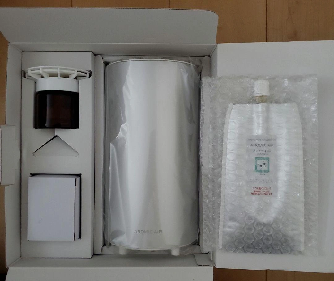 購入して気に入ったのでプレゼント用に購入しましたが、別の物を贈ったため出品します。 写真を撮るために開封しましたが、本体は箱から出していません。 アロミック・エアー用オイル【アンチウィルス】50mlもお付けします。 燻銀で触るとざらっとします。指紋がつかずアロマは程よく広がるので気に入っています。 箱に穴が開いています。写真4、5枚目でご確認ください。中身への影響はありません。 ご希望の方はお気軽にご連絡ください。
