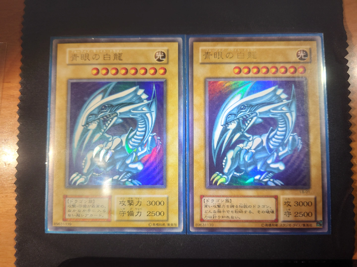 閲覧頂き心から感謝申し上げます。 ※緊急でお金が必要なためキャロットでも出品してます。 当カードは正規品になります。 ※メルカリ、ラクマでも出品しております。 ※バラ売り不可 ※オマケなしでも値段は変わりません。 初期カードがコレクター向けフリマアプリmagiで同じグレードのが5万円代で出品されてますので、値上げしました ■カード説明■ 1・カード名:青眼の白龍(初期) ・型番:なし ・レアリティ:ウルトラレア ・収録パック:遊戯王スターターボックス 2・カード名:青眼の白龍(復刻) ・型番:LB-01  ・レアリティ:ウルトラレア  ・収録パック:青眼の白龍伝説(LB)『第1期Vol.1』『スターターボックス』 ■カード状態■ 1 青眼の白龍(初期) ・小さな枠キラ、小さな小傷 ※最初期はどうしても枠キラや小傷がついてしまいます。 2青眼の白龍(復刻) ・小さな凹みが2箇所、左下角に折れ ※綺麗な状態ではございますが古いカードとなっておりますので、一応プレイ用とさせてください。 ※2種類の懐中電灯で細かな傷等も確認しております。 ★期間限定でオマケをお付けしております。 ■保管方法■ 二重スリーブとローダーに入れて暗い場所で保管しておりました。 ■梱包方と流れ■ 1.二重スリーブ 2.ローダー(カード2枚入れます) 3.カードのズレ防止クリアカード 4.シール付クリア袋 5.防水対策用にラップ 6.ダンボールでサンド 7.ぷちぷち梱包 ■注意事項■ ノークレーム、ノーリターン、でお願い致します。 返品、返金、キャンセルに一切応じません。 当カードセットのバラでのご案内は致しかねます、ご了承ください。 当方の分かる範囲ではごさいますが、当カードの情報としは記載しております 大変高額設定のカードですので、ご購入はよく考えてくださいますよう御願い申し上げます。